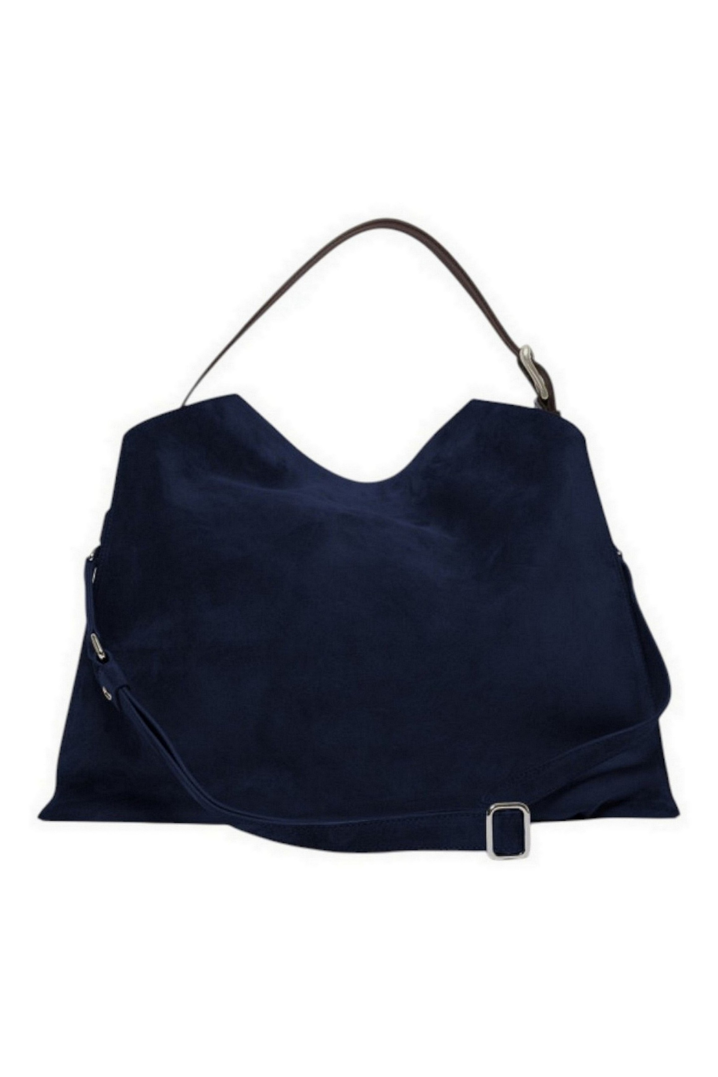 Trinity Peach Large è la versione più grande di Trinity, realizzata in morbido suede e cuoio, dalle curve ampie e morbide. Una borsa che ti accompagnerà per tutto il giorno. Dimensioni: Larghezza: 48 cm / Altezza: 30 cm / Profondità: 11 cm