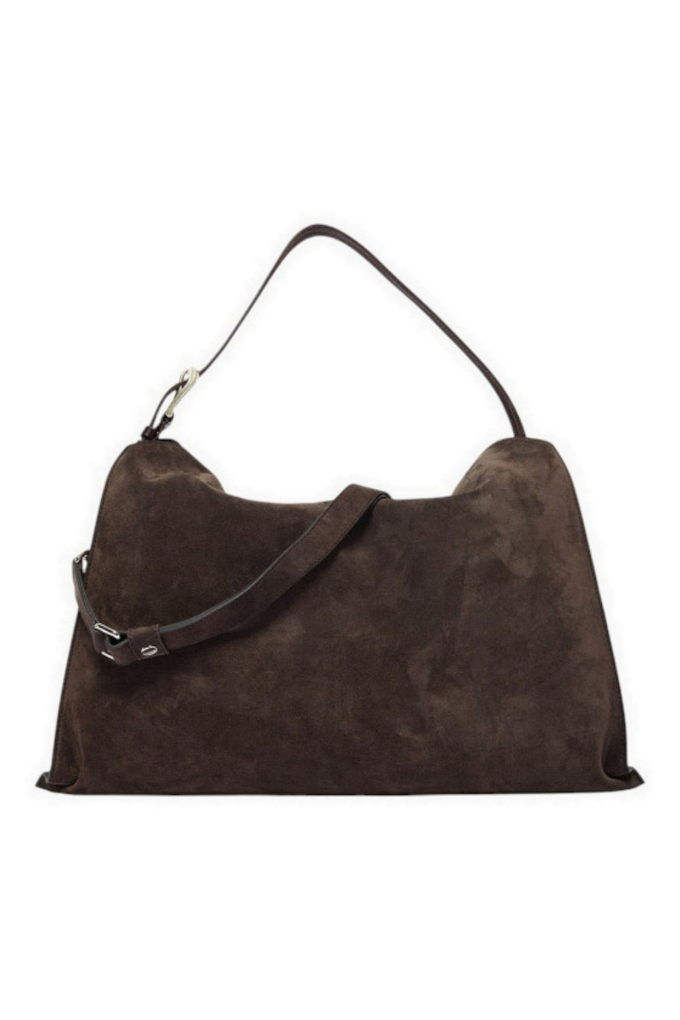 Trinity Peach Large è la versione più grande di Trinity, realizzata in morbido suede e cuoio, dalle curve ampie e morbide. Una borsa che ti accompagnerà per tutto il giorno. Dimensioni: Larghezza: 48 cm / Altezza: 30 cm / Profondità: 11 cm