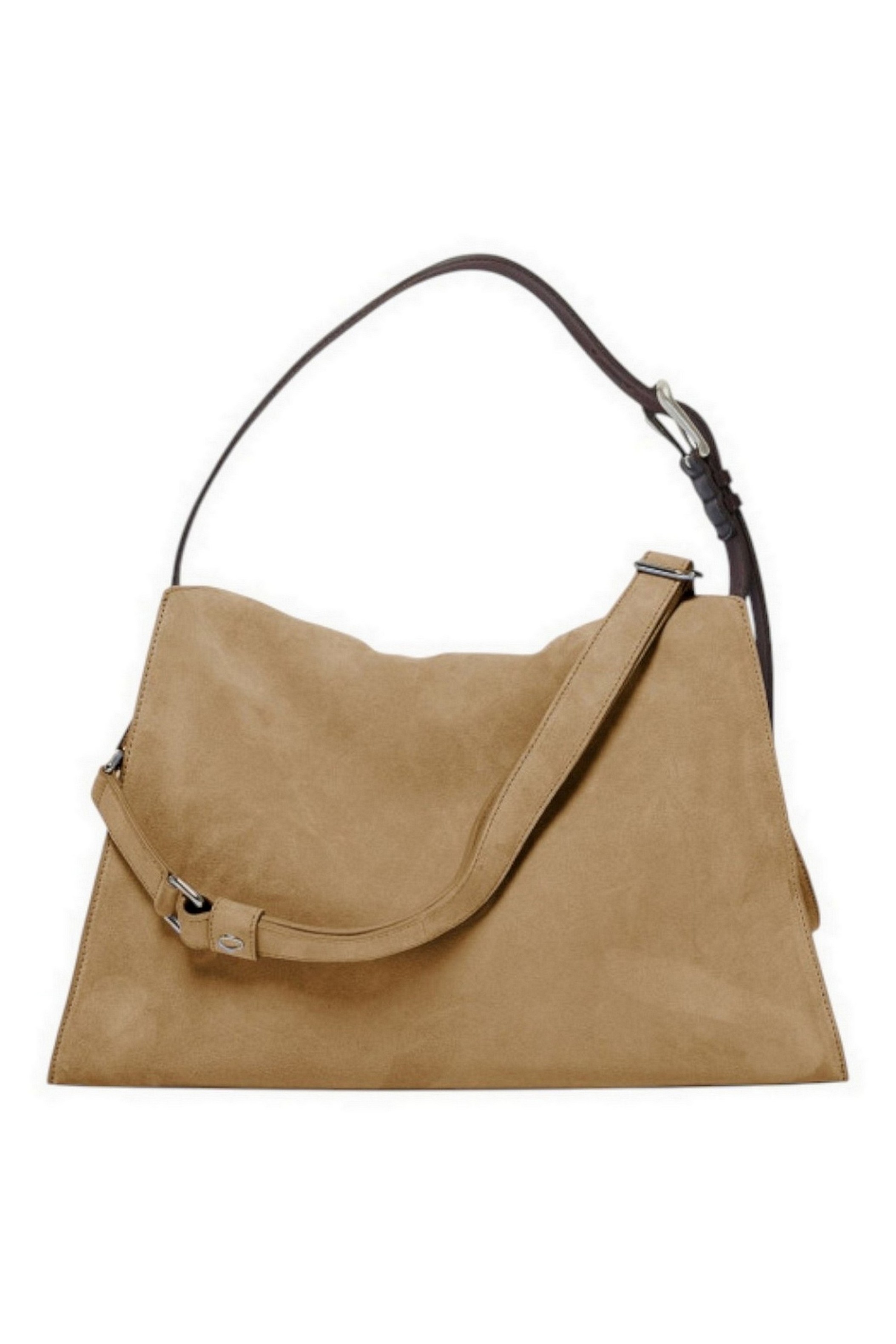 Trinity Peach Midi è una borsa a spalla in suede e cuoio con una ottima capienza e uno stile casual adatta a un look all day.