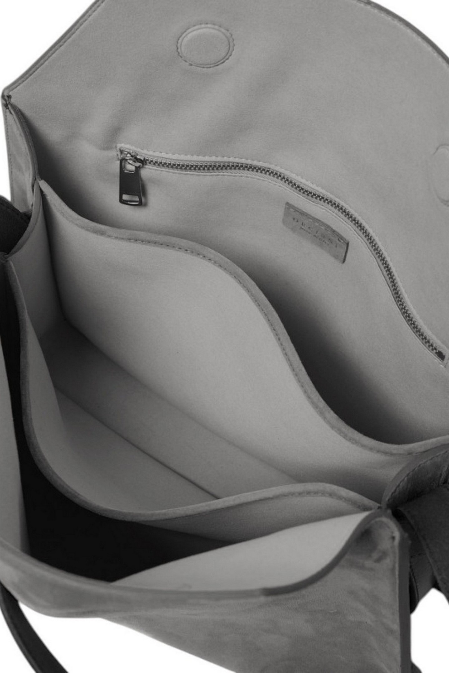 Borsa modello Trinity di Orciani: libera fuori, organizzata dentro.