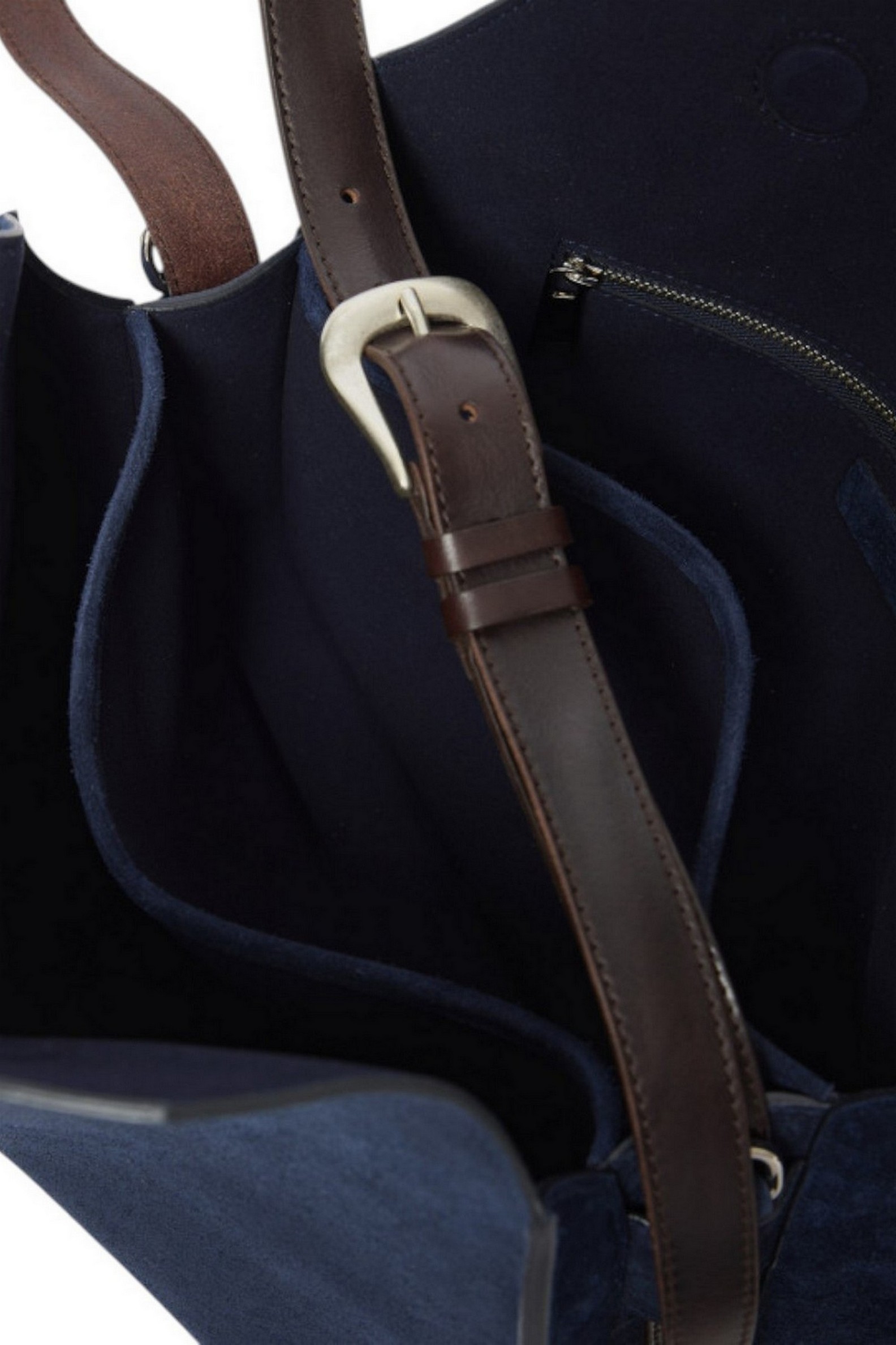 Funzionalità: manico in cuoio con fibbia regolabile e removibile utilizzabile come cintura / tracolla in suede regolabile e removibile