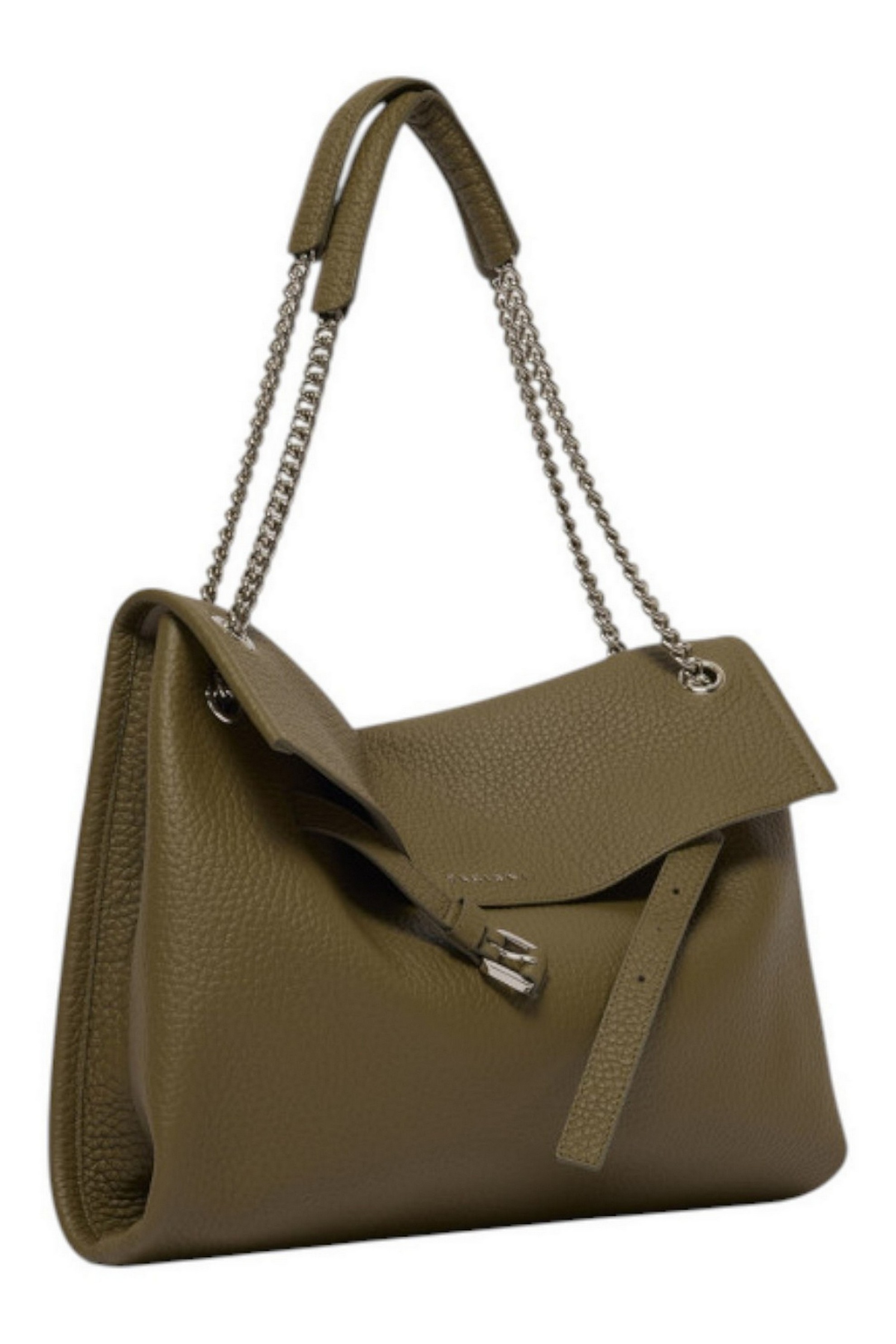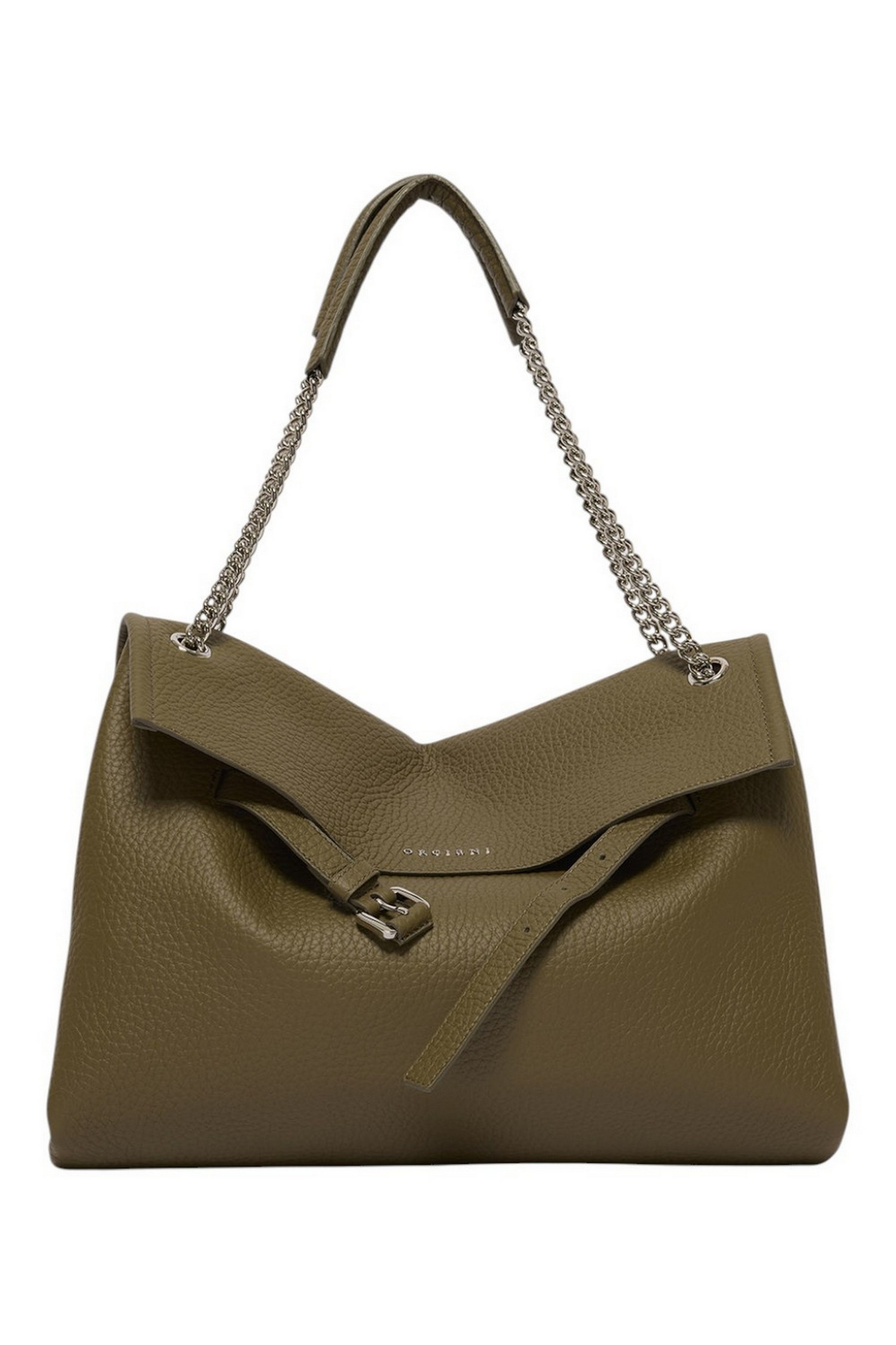 Borsa Venus di Orciani dalle forme morbide e il design strutturato, perfetto trait-d'union fra passato e futuro, una continuità di valore arricchita di contenuti nuovi, contemporanei, come il dettaglio della cintura slacciata, la forma allungata (east - west) e la tracolla catena. Venus Soft Midi è una borsa a spalla in pelle martellata, elegante e funzionale al contempo.