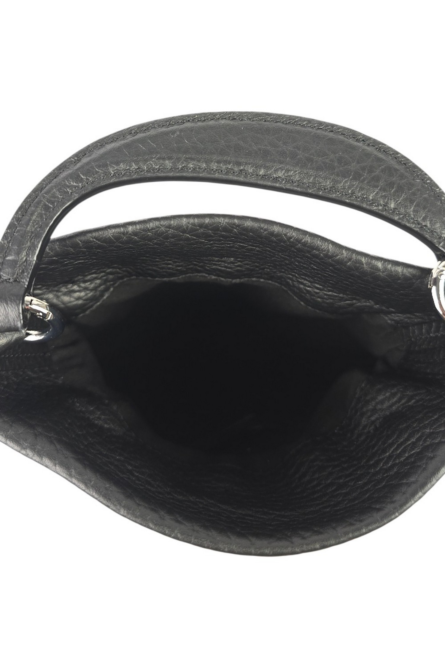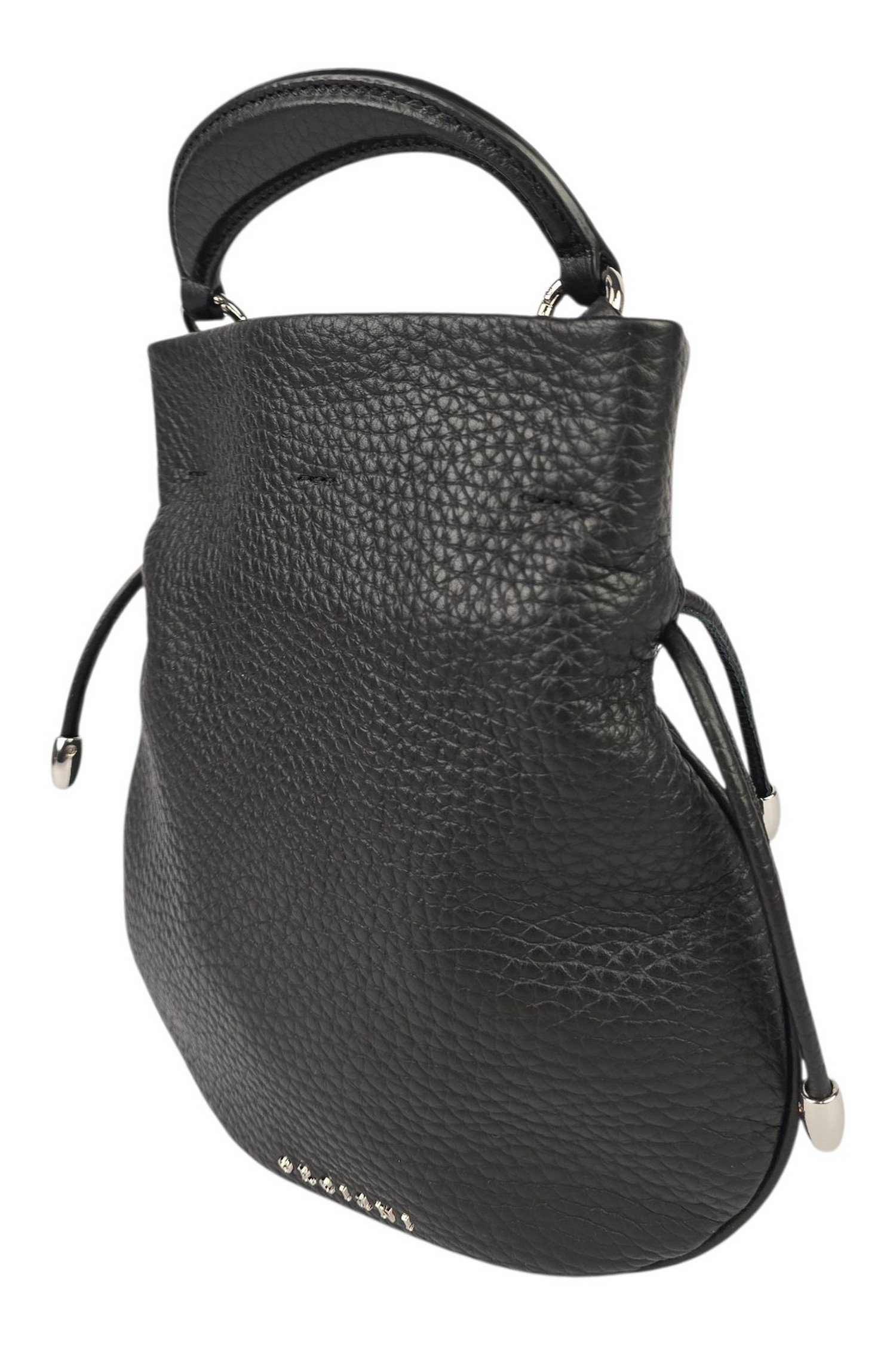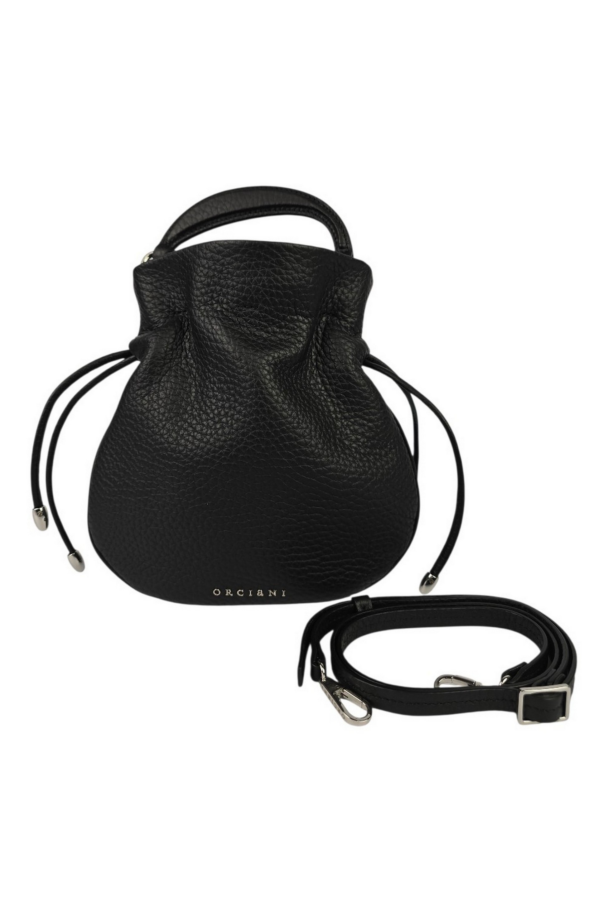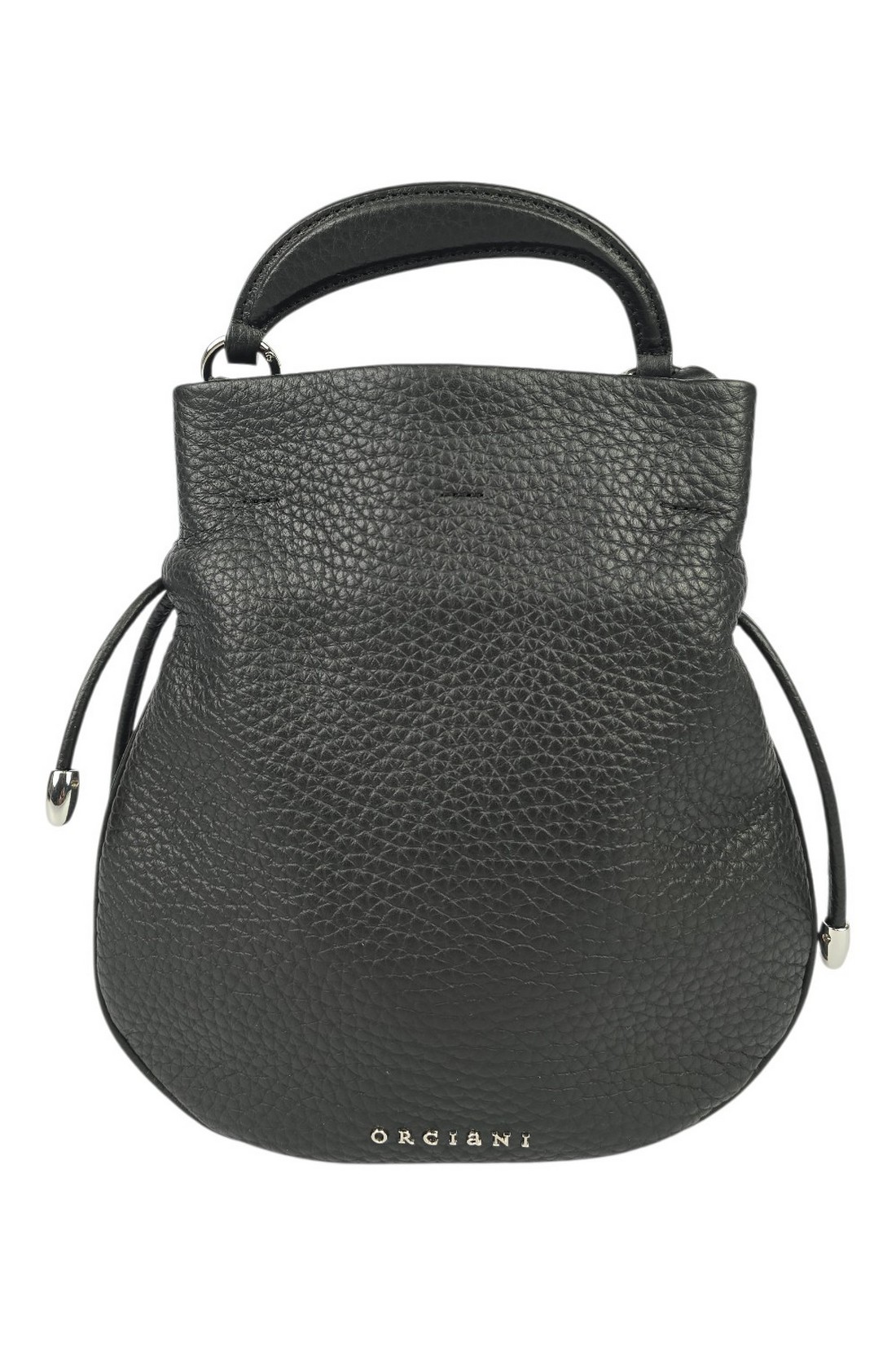 Borsa secchiello modello Jucie di Orciani in pelle martellata. Dimensioni: Larghezza: 24 cm / Altezza: 24 cm. Tasche: un taschino interno. Chiusura: con cordoncino. Manico a mano / tracolla regolabile removibile. Materiale: pelle martellata. Dettagli: metallerie finitura nickel palladio. Composizione: Esterno: 100% Pelle bovina, Interno: 50% Poliammide 50% Poliuretano Made in Italy