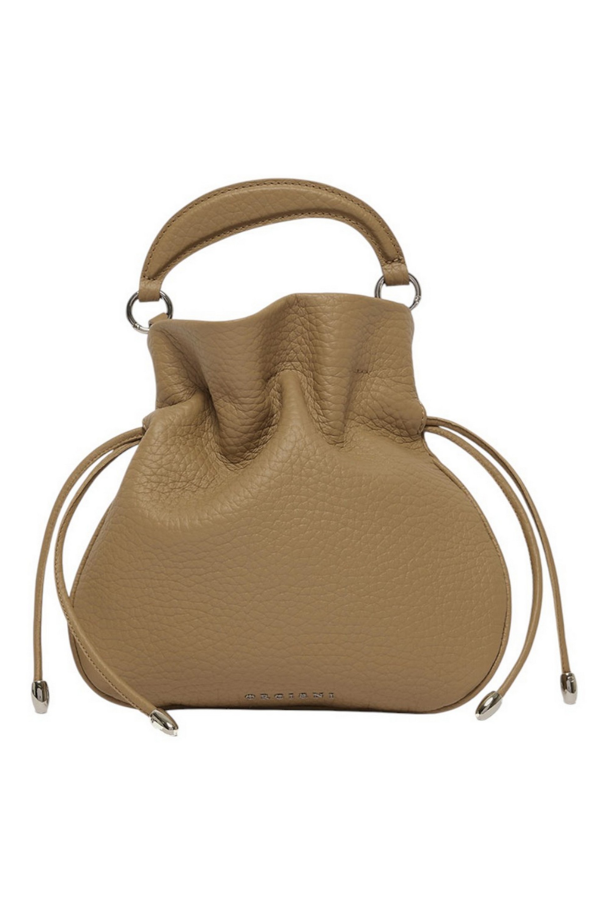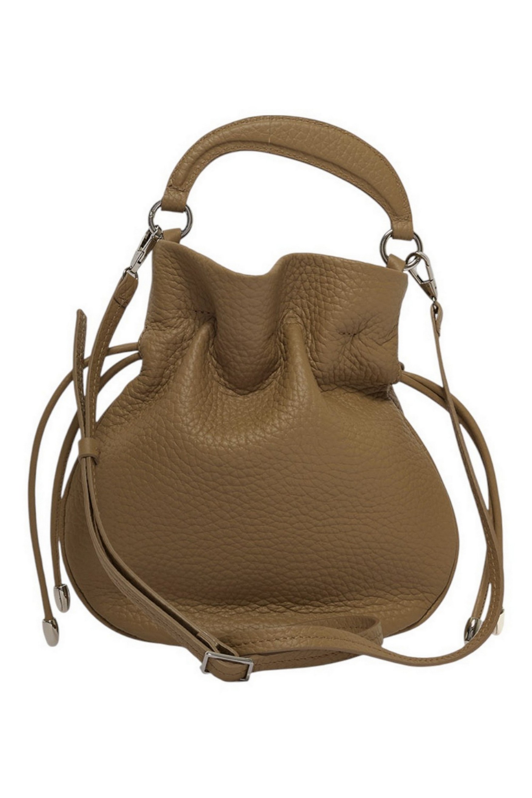 Borsa secchiello modello Jucie di Orciani in pelle martellata. Dimensioni: Larghezza: 24 cm / Altezza: 24 cm. Tasche: un taschino interno. Chiusura: con cordoncino. Manico a mano / tracolla regolabile removibile. Materiale: pelle martellata. Dettagli: metallerie finitura nickel palladio. Composizione: Esterno: 100% Pelle bovina, Interno: 50% Poliammide 50% Poliuretano Made in Italy