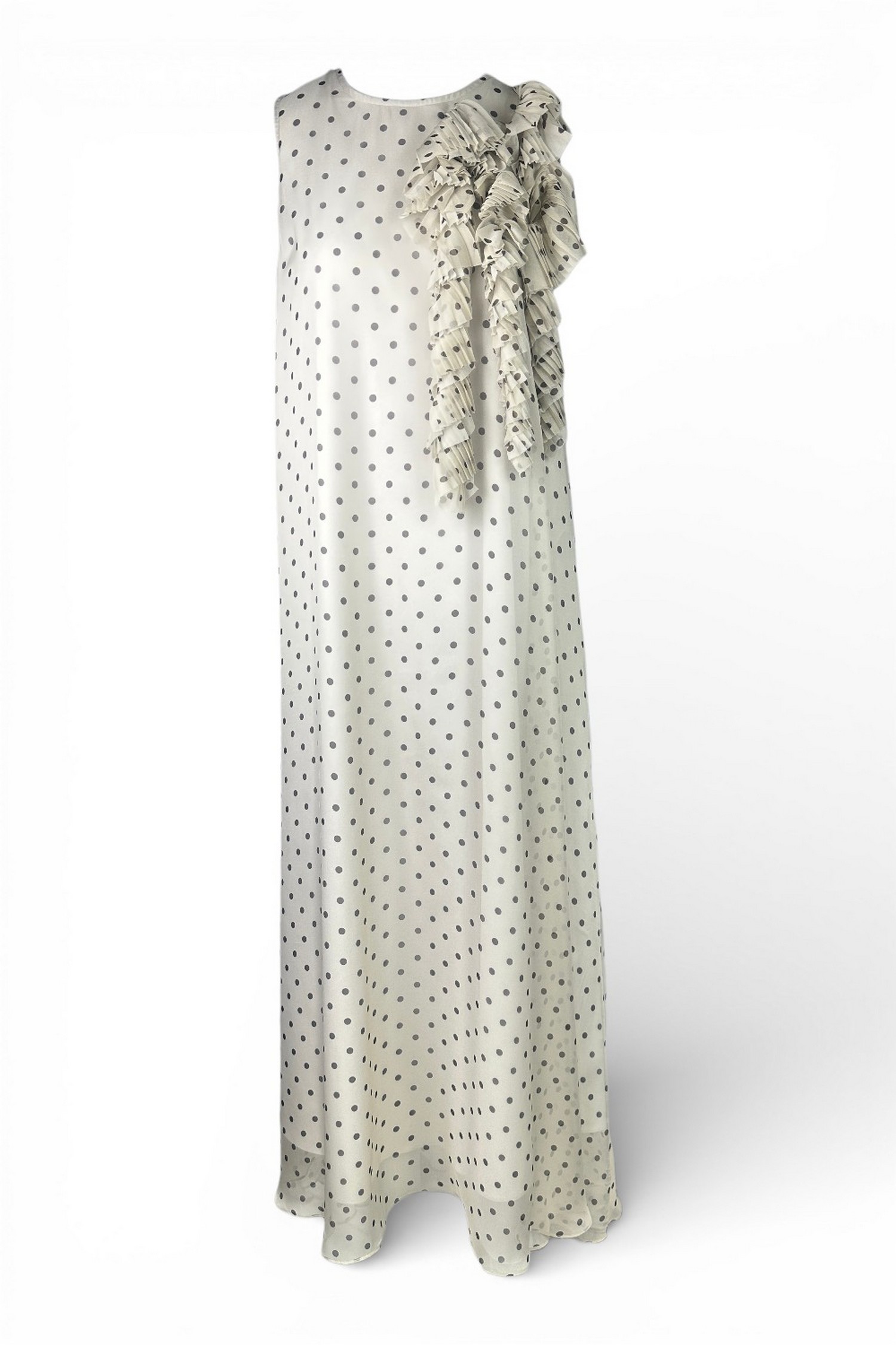 Abito di P.A.R.O.S.H. in chiffon. Fantasia pois. Dettagli plisettati su scollo. Senza maniche. Foderato. Vestibilità regolare. Composizione 1: 100% poliestere. Composizione 2: 95% poliestere, 5% elastane. Made in Italy.