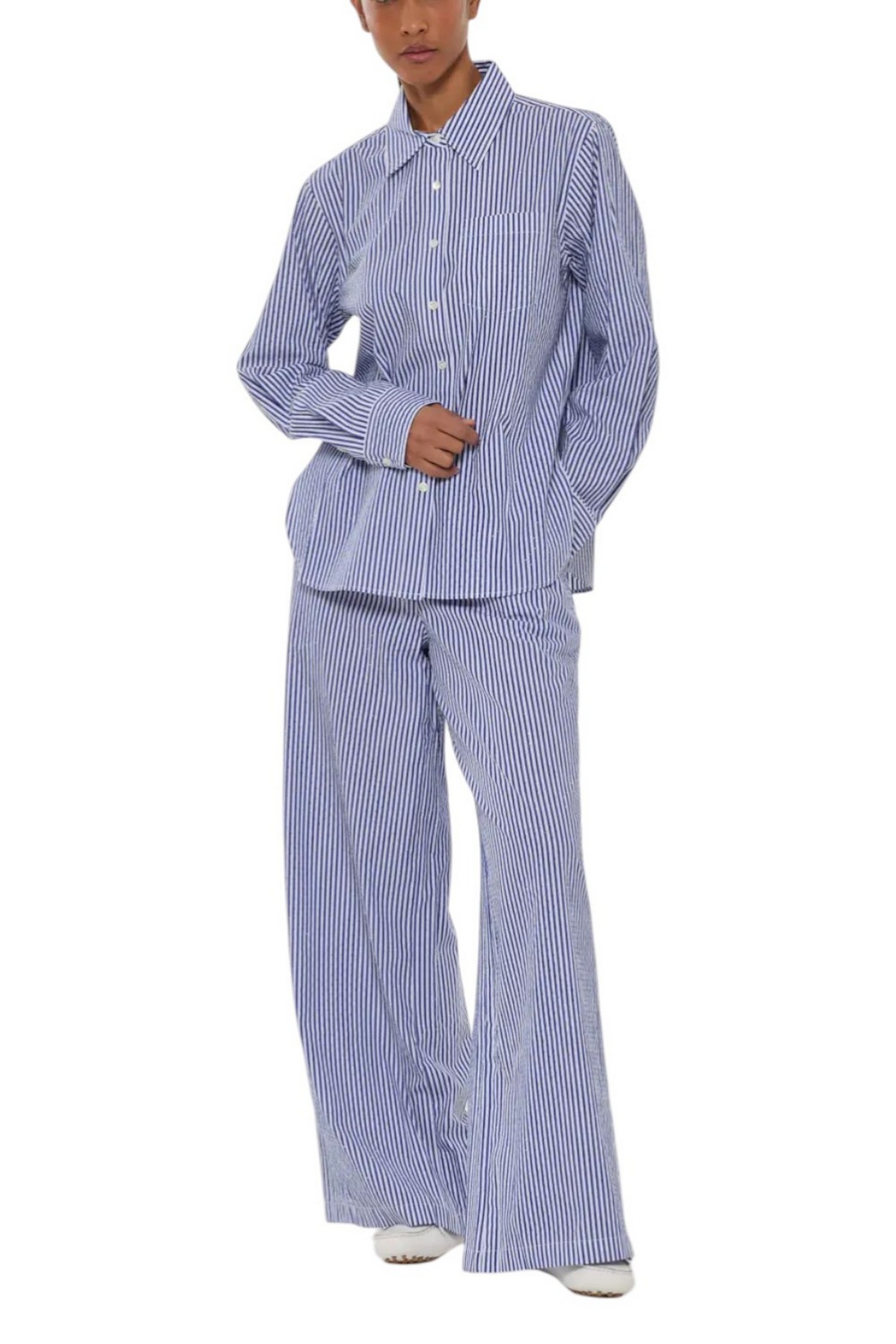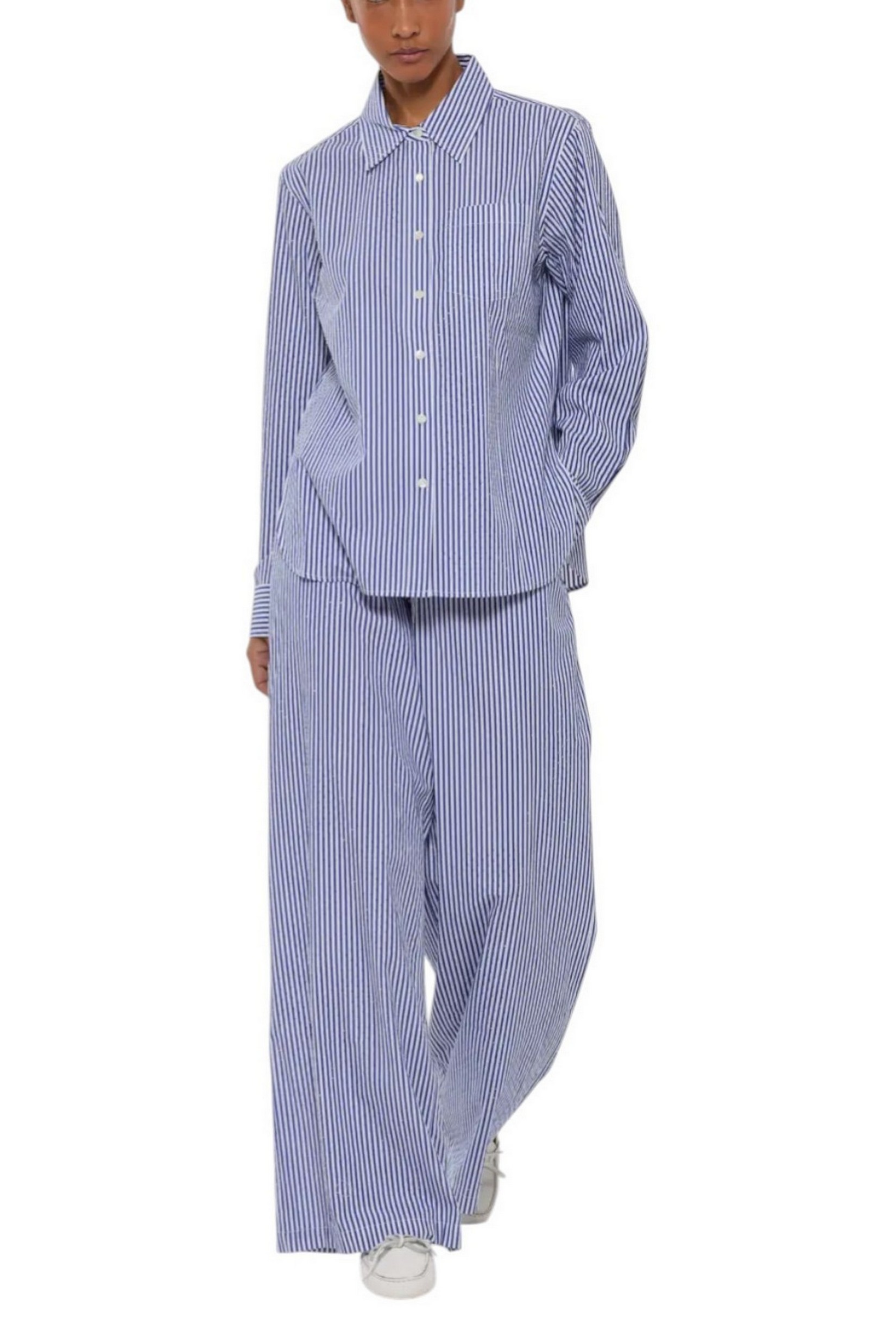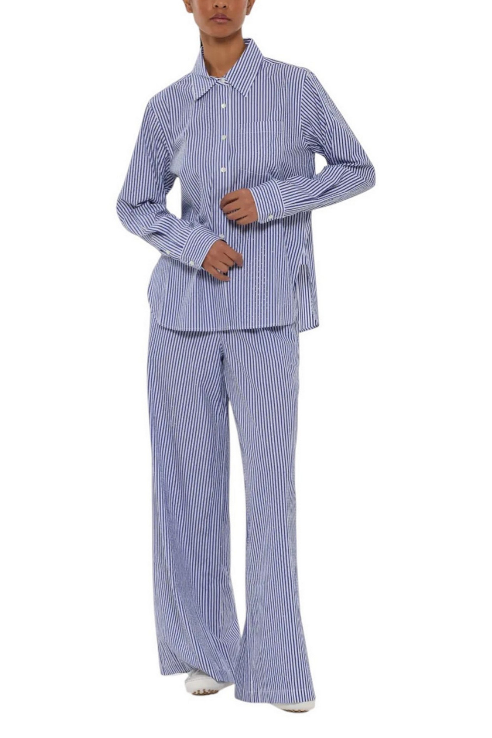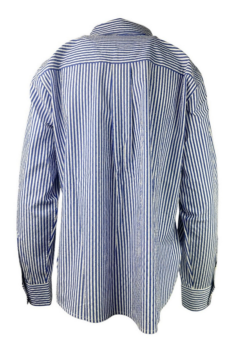 Camicia di P.A.R.O.S.H.. Fantasia righe. Dettagli strass. Taschino sul davanti. Vestibilità morbida. Spacchi laterali. Composizione: 100% cotone.