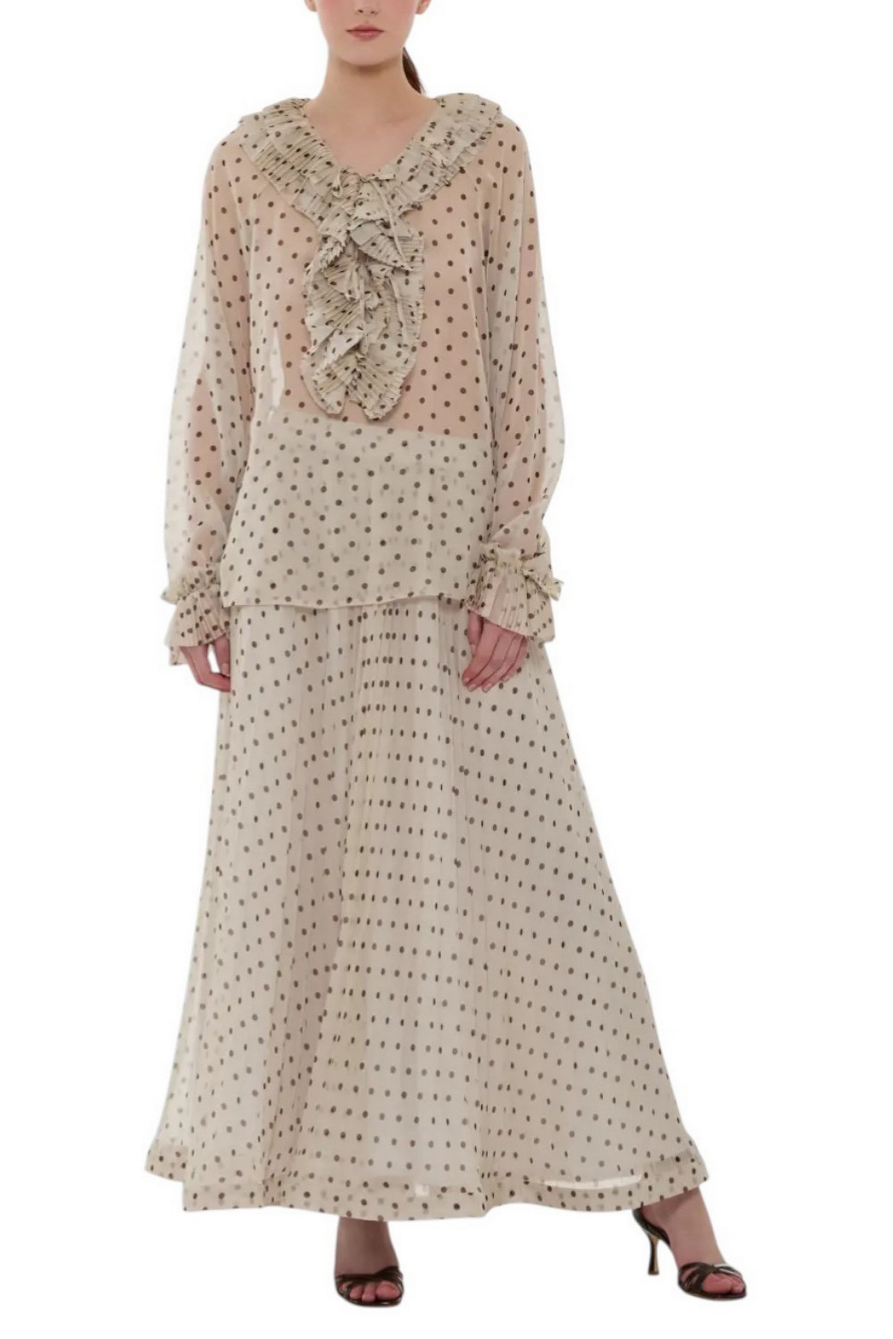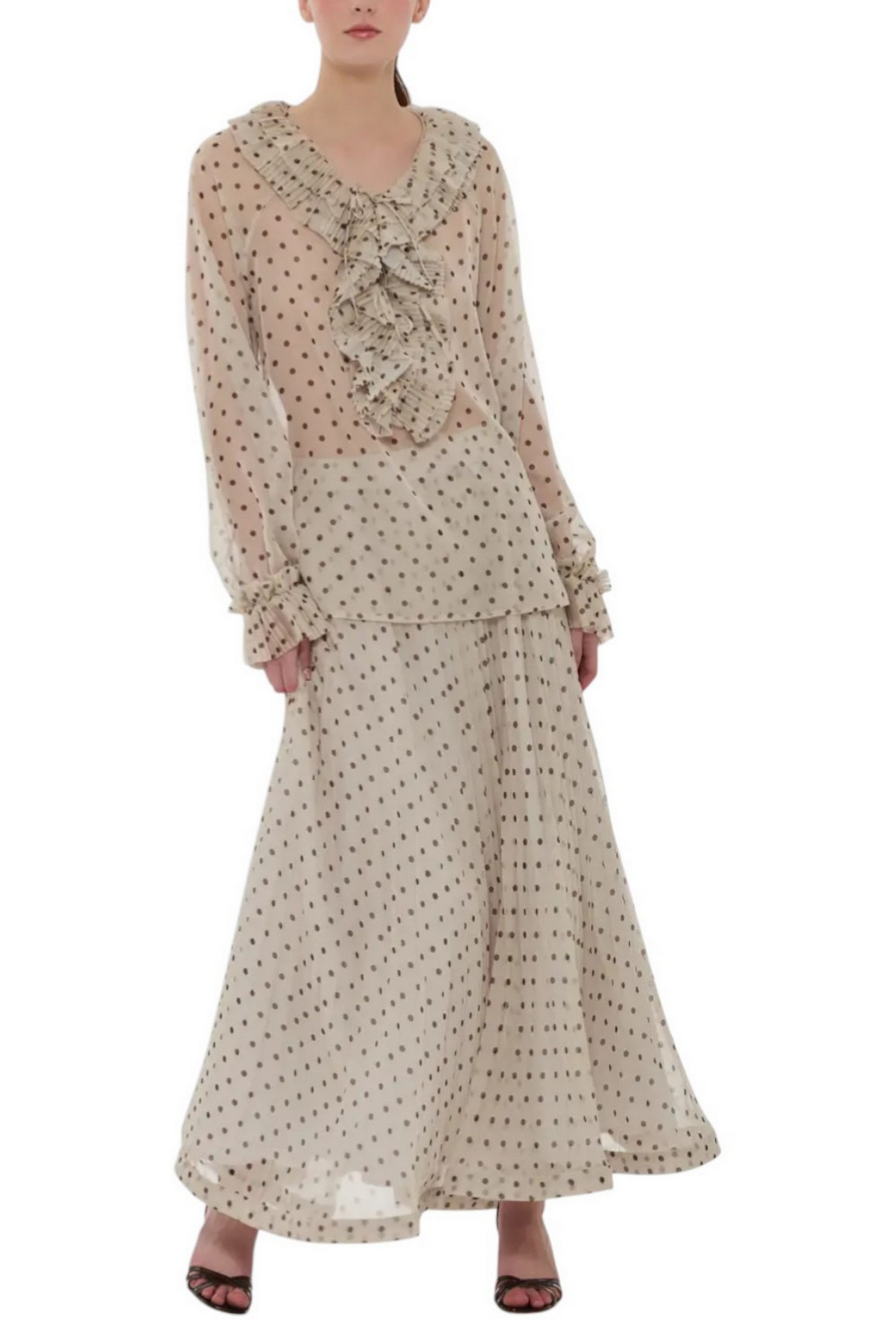 Gonna di P.A.R.O.S.H. Lunga in chiffon. Plissettata. Fantasia POIS. Elastico in vita. Sottogonna. Composizione: 100% poliestere. Made In Italy.