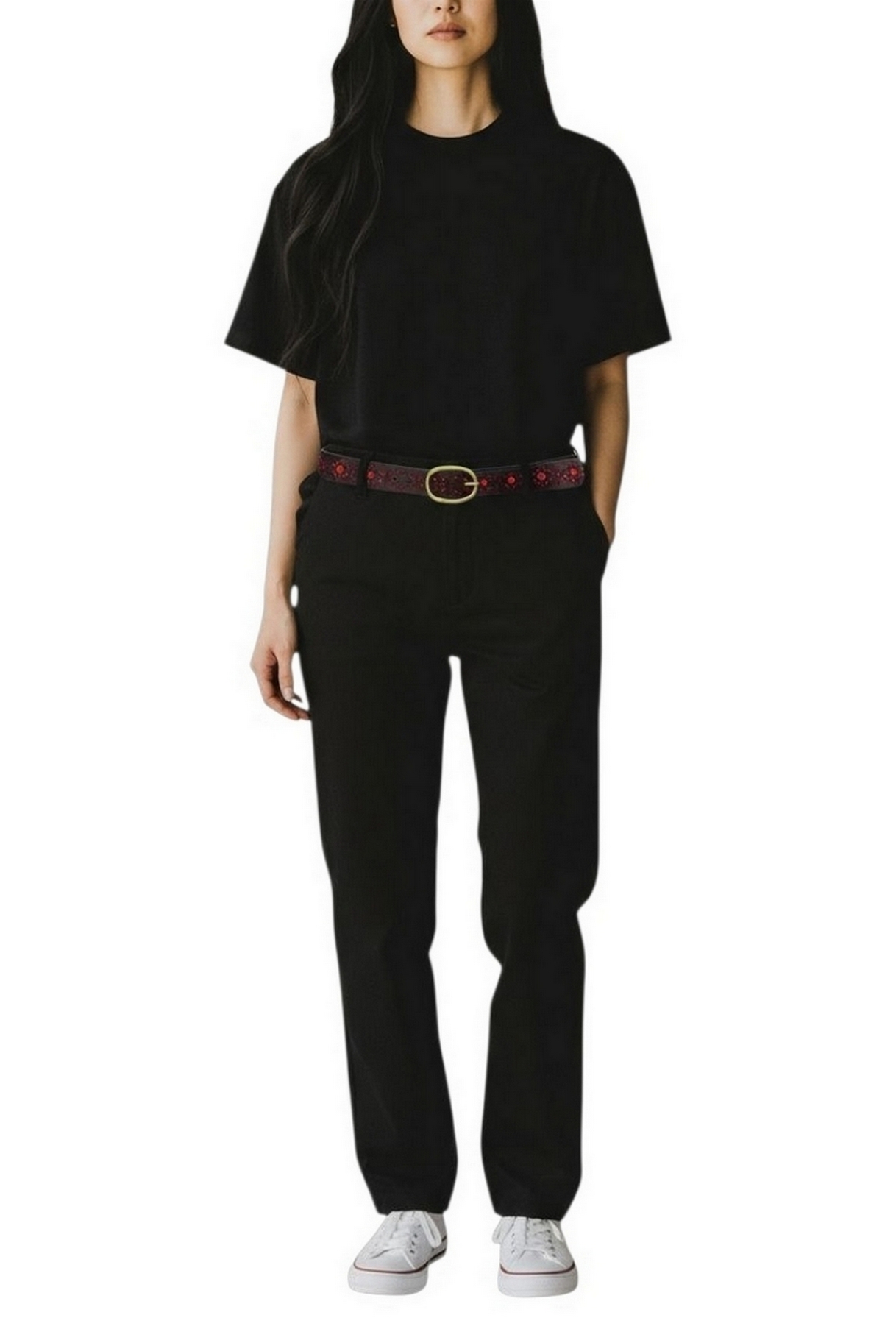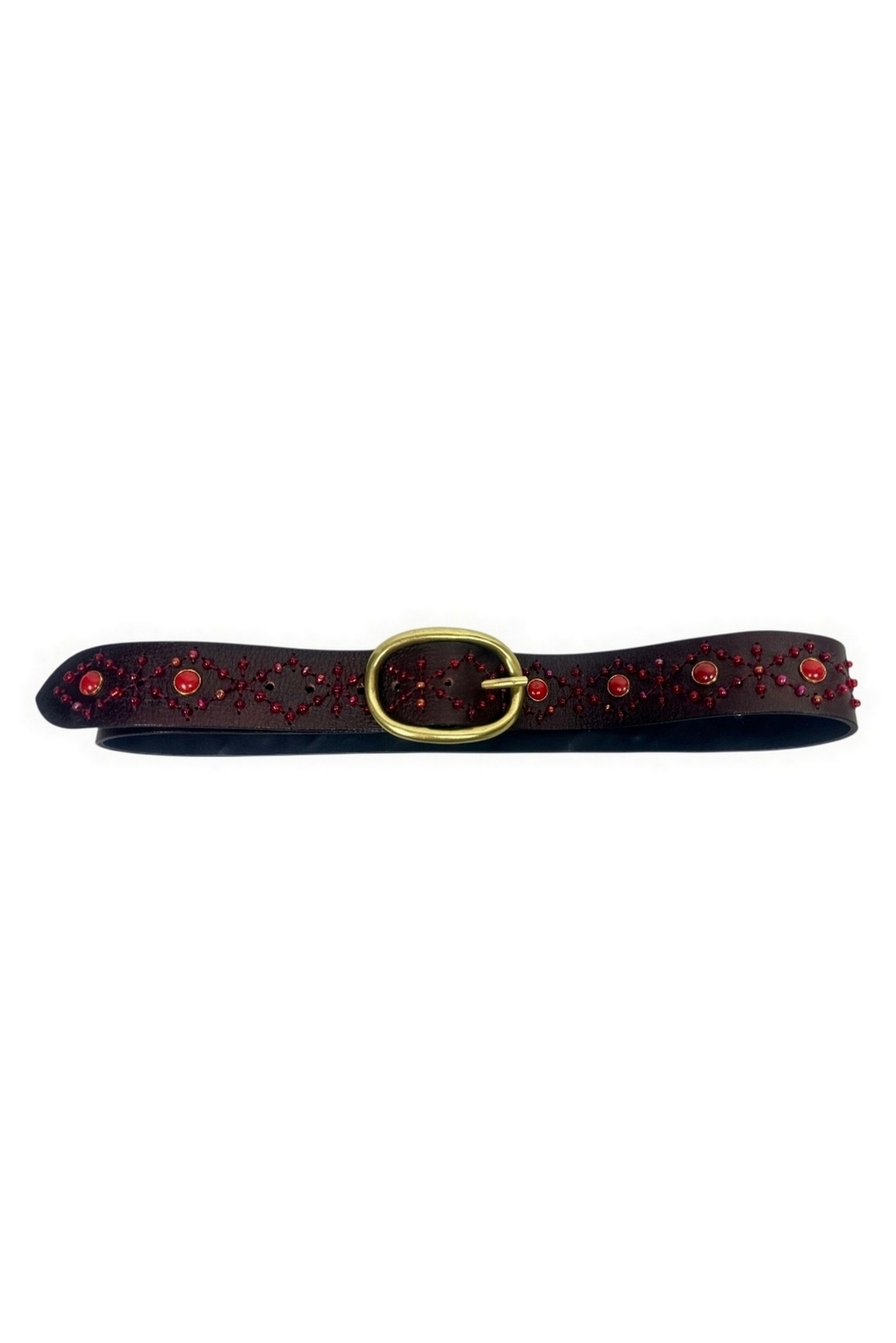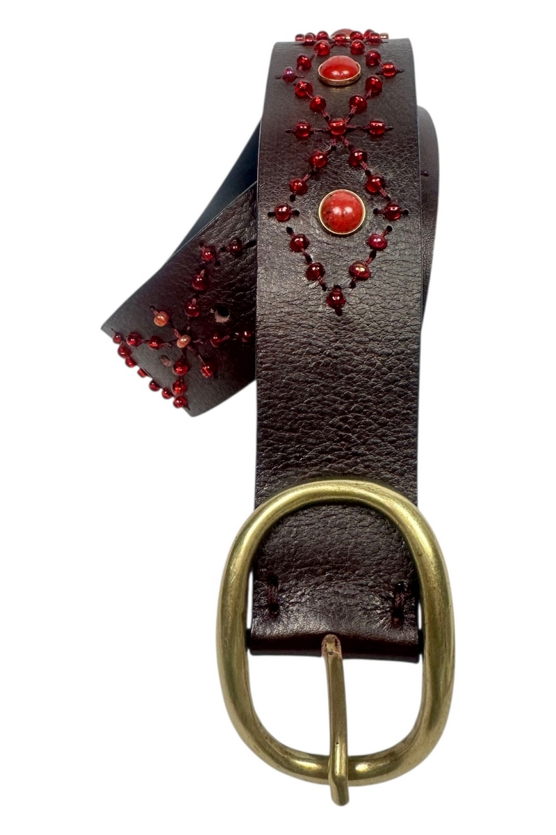 Cintura in pelle decorata con borchie di Puntovita & Arsenice. Vestibilità regolabile tramite fibbia tonda in metallo dorato, pensata per adattarsi alla vita o ai fianchi su diversi modelli di pantaloni, gonne e abiti, valorizzando la silhouette con stile deciso. Realizzata in pelle marrone con lavorazione traforata ed arricchita da raffinate borchie e pietre bordeaux incastonate lungo tutta la lunghezza. La fibbia dorata dona un tocco vintage e raffinato, mentre le finiture curate trasmettono unattenzione particolare ai dettagli. Perfetta nella stagione autunno/inverno, ma adatta a tutto lanno, questa cintura si abbina magnificamente a jeans, pantaloni a vita alta, camicie bianche, vestiti lunghi e giacche in pelle. Ideale per esaltare look boho, country o rock chic, oltre che outfit casual a cui si vuole aggiungere carattere. Questa cintura in pelle decorata è laccessorio che rinnova il guardaroba con personalità ed eleganza. Le borchie e le pietre risaltano su qualsiasi capo, donando un tocco originale e glamour. Sceglila per valorizzare i tuoi outfit quotidiani o rendere speciali le occasioni serali con un dettaglio dautore. Accessorio perfetto per valorizzare ogni outfit. Perfetto per completare qualsiasi look, dal più casual al più sofisticato. Eleganza discreta per un prodotto versatile e senza tempo.
