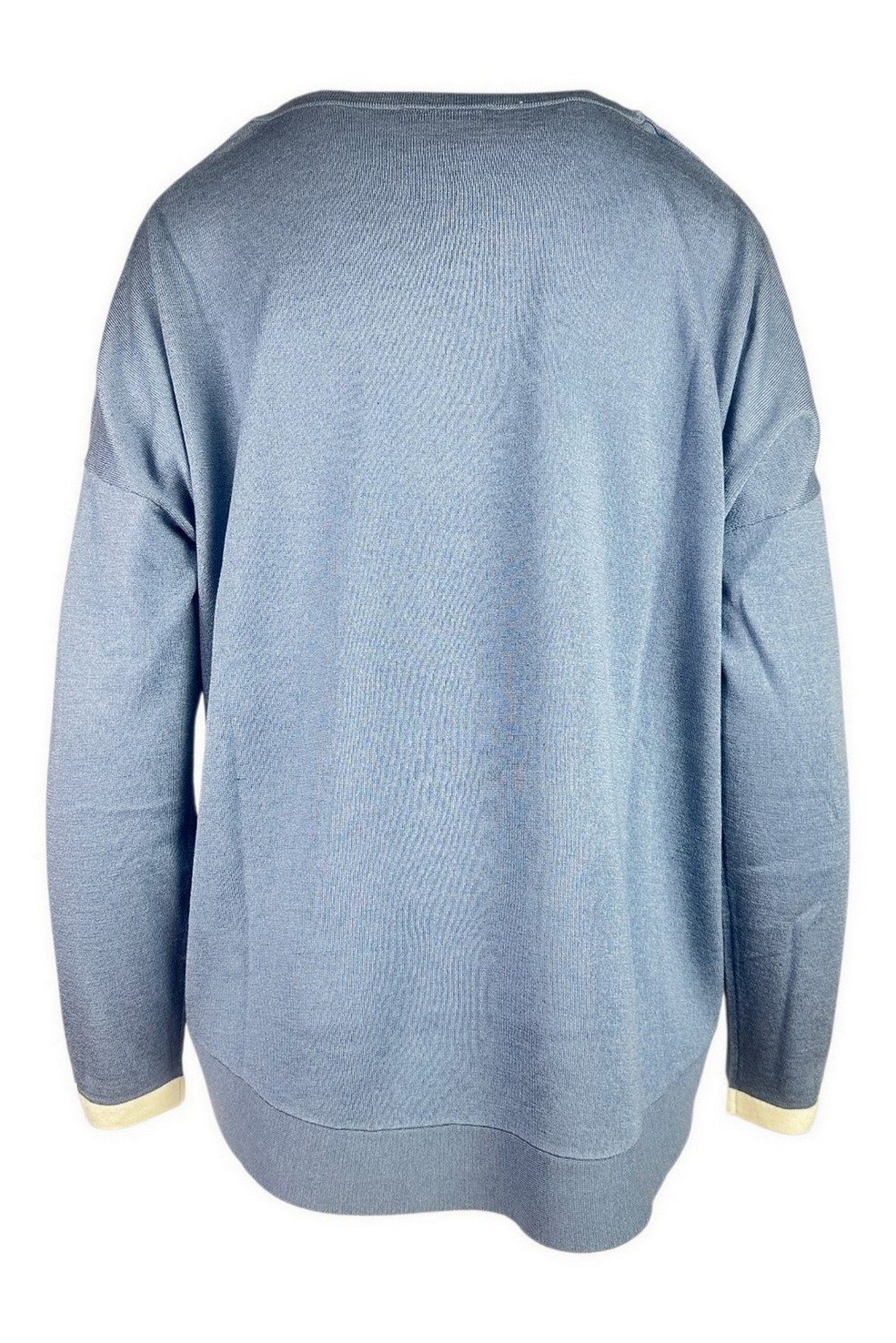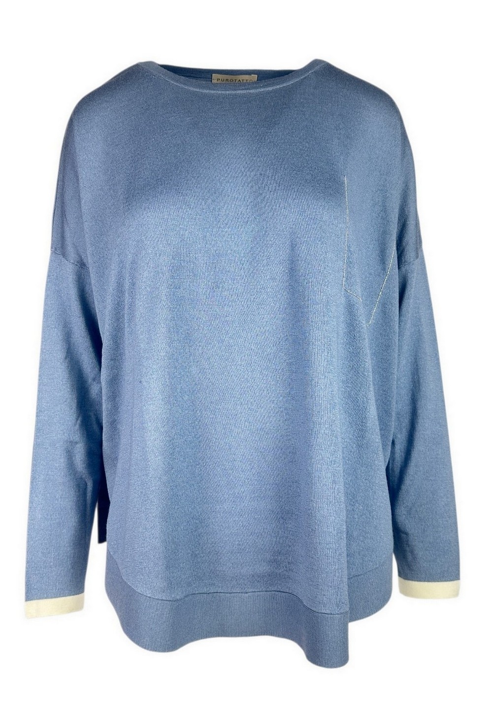 Maglia di Purotatto. Modello over. Girocollo. Stondata al fondo. Maniche con bordo a contrasto. Dettagli monile. Composizione: 70% seta, 30% cachemire. Made in Italy.