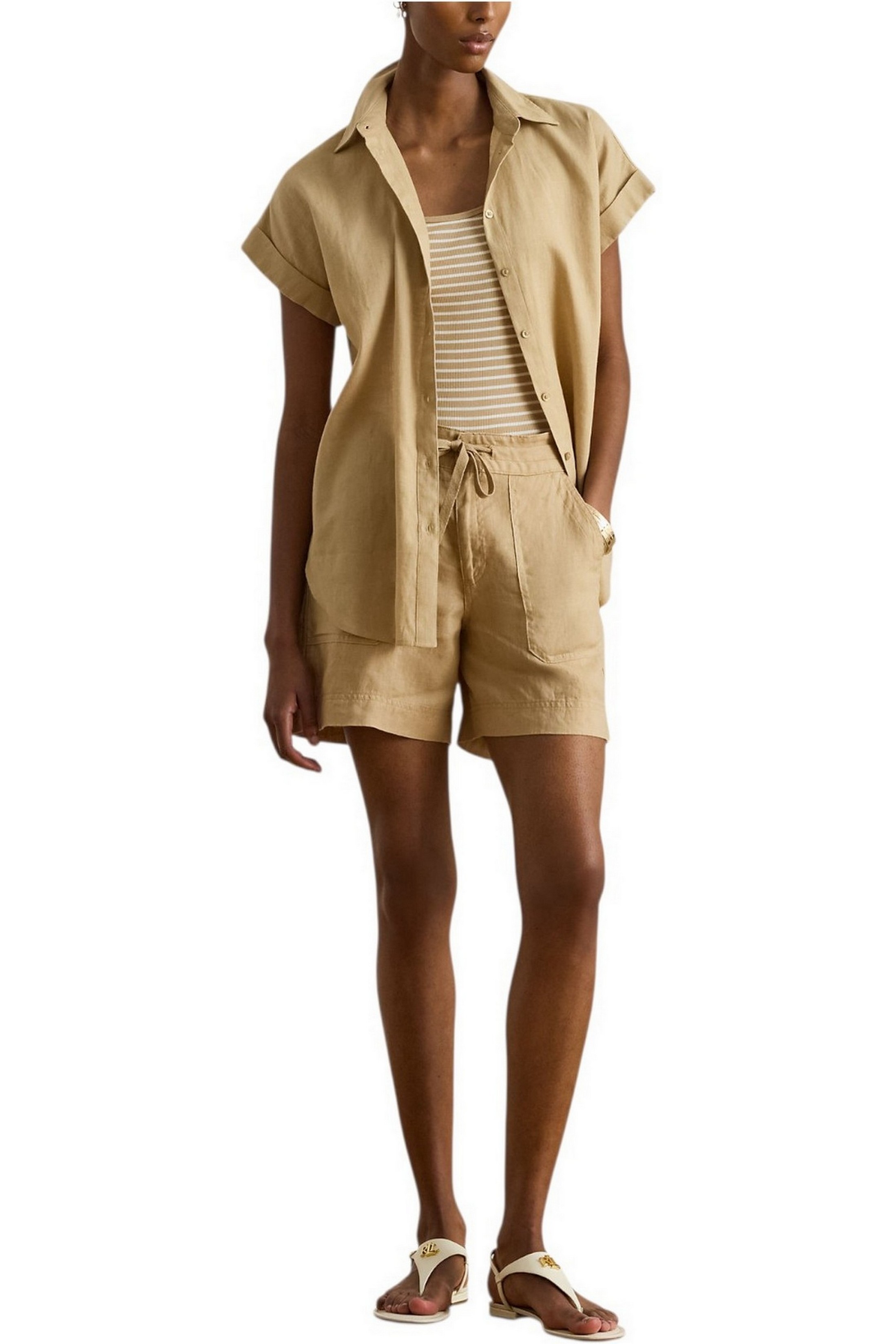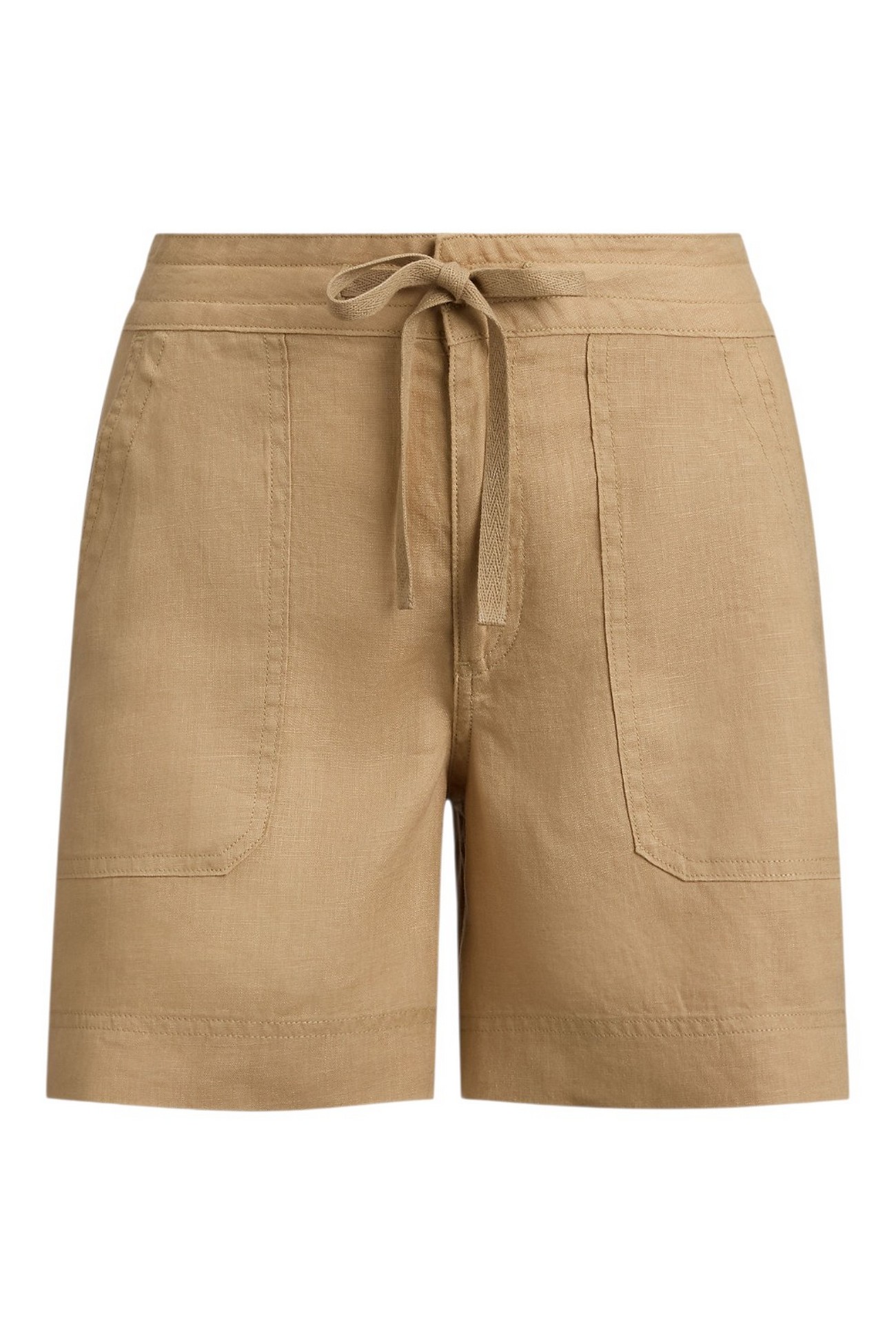 Il leggero tessuto di lino e il taglio ampio rendono questi pantaloncini di Ralph Lauren con coulisse una scelta perfetta per le giornate calde. Silhouette ampia. Lunghezza media sulla coscia. La taglia 8 americana ha un cavallo di 31,75 cm e un'apertura della gamba di 69,25 cm. Tutte le taglie hanno un cavallo di 15,24 cm. Chiusura con zip e bottone. Cintura con coulisse. Bottoni in corozo personalizzati con logo "Lauren Ralph Lauren". Due tasche anteriori in vita. Due tasche posteriori applicate con bottoni in vita. Pinces posteriori in vita. Sfoderati. 100% lino. Lavabili in lavatrice o a secco. La modella è alta 178 cm e indossa una taglia 4 americana.