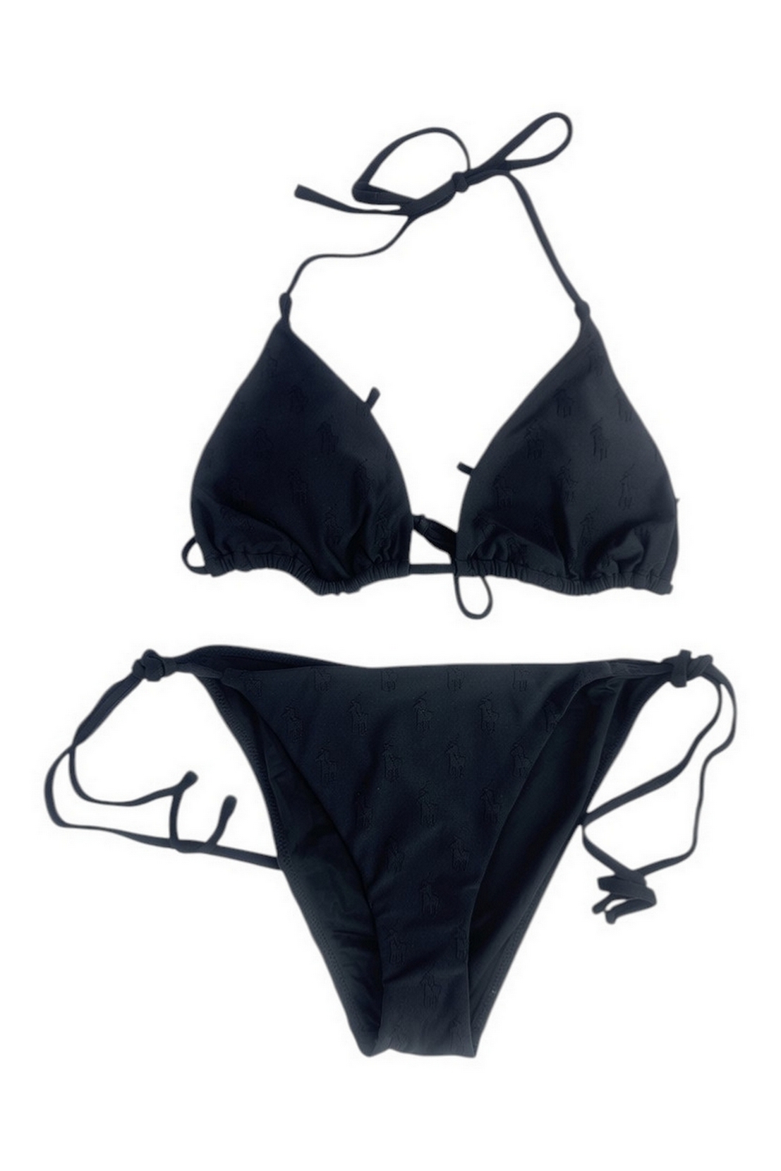 Bikini di Ralph Lauren con pony ricamati. Reggiseno a triangolino con coppette imbottite removibili. Slip con laccetti. Composizione: 88% reciclato, 12% elastane.