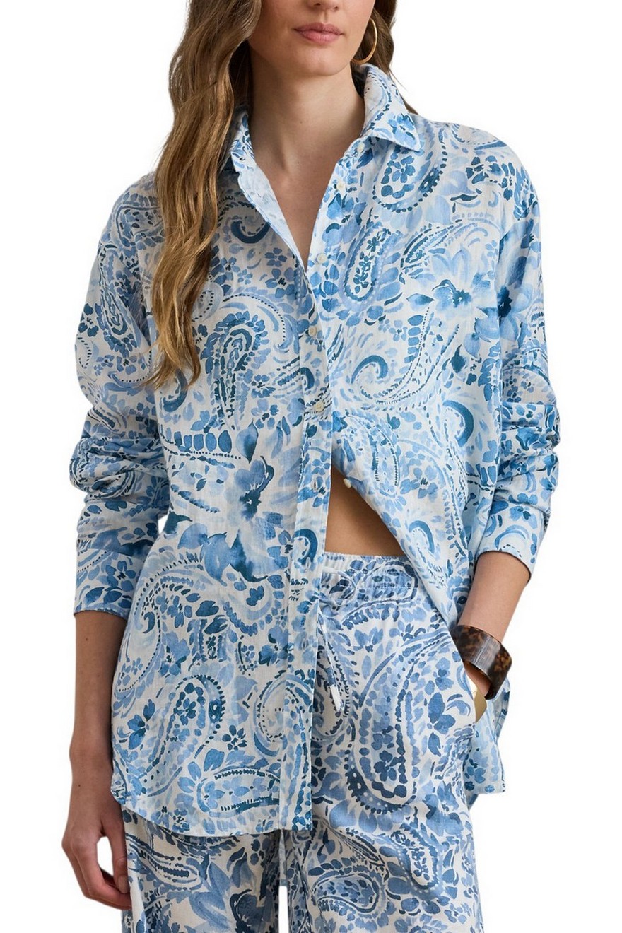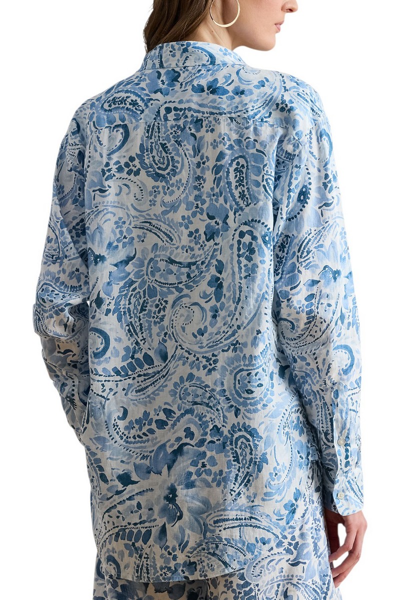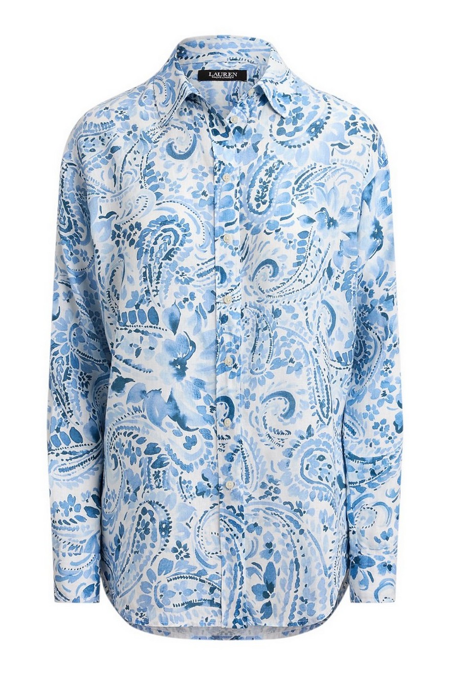 Camicia ralizzata in lino leggero di Ralph Lauren con bottoni, presenta il motivo paisley pittorico della stagione in una palette di colori blu e bianco. I bottoni con incisione "Lauren Ralph Lauren" aggiungono un tocco distintivo. Vestibilità comoda e rilassata. Lunghezza fino ai fianchi. Colletto a punta. Abbottonatura con bottoni. Bottoni personalizzati con logo "Lauren Ralph Lauren". Maniche lunghe con polsini a barilotto abbottonati. Spalle scese. Carré posteriore curvo. Orlo arrotondato. 100% lino. Lavabile in lavatrice o a secco. La modella è alta 178 cm e indossa una taglia small.