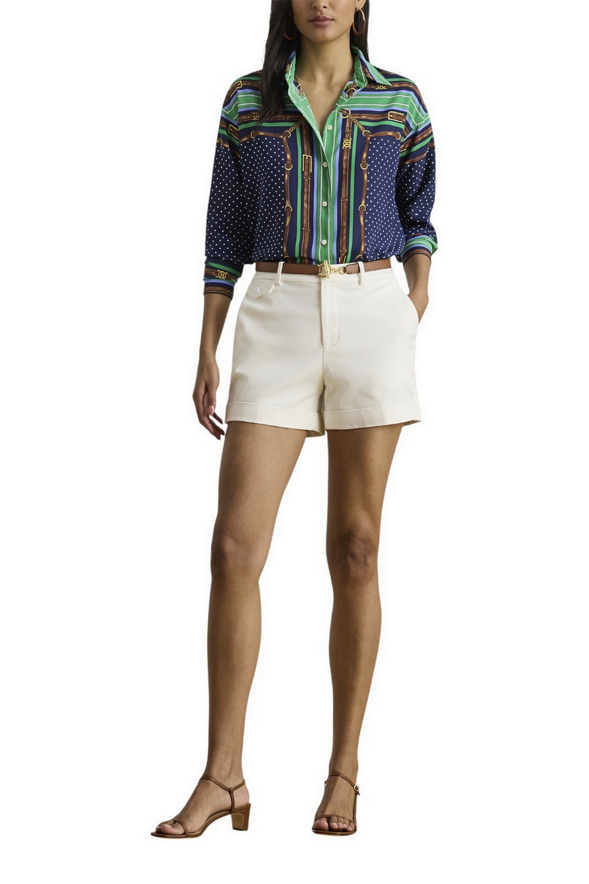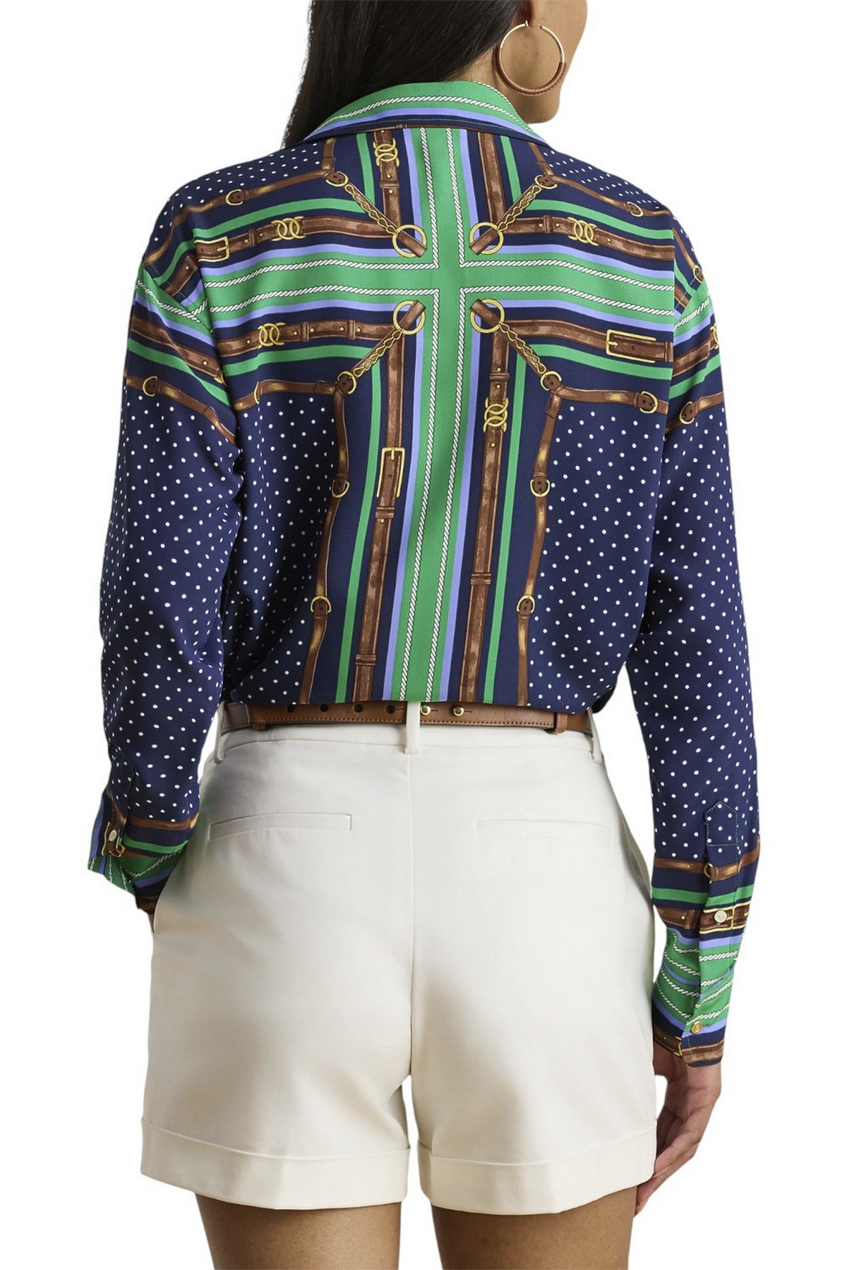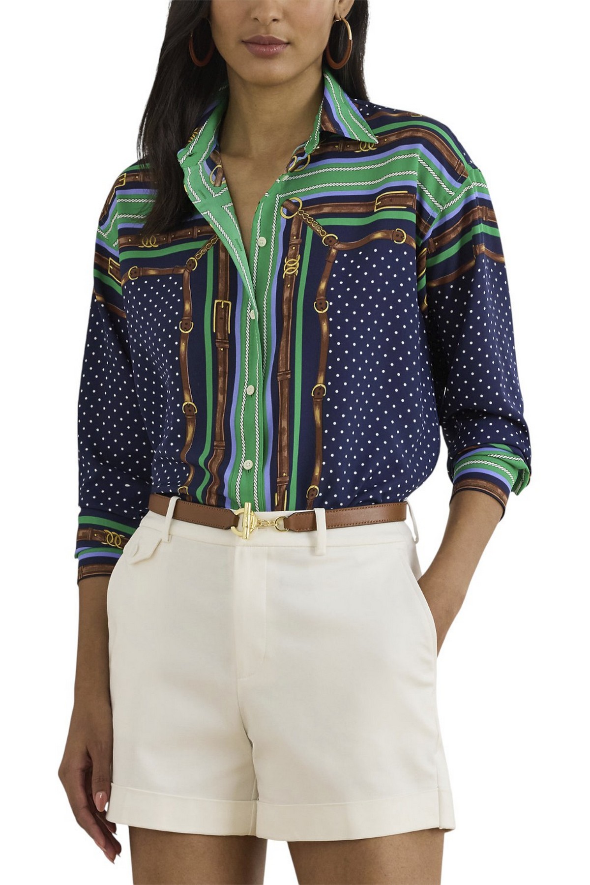 Camicia di Lauren Ralph Lauren realizzata in leggero crêpe de chine. Unisce i classici pois alla stampa con cintura ispirata all'equitazione di Ralph Lauren. I bottoni distintivi completano il look. Vestibilità comoda e rilassata. La taglia media ha una lunghezza del corpo di 76 cm e una lunghezza delle maniche di 81 cm. La lunghezza del corpo e delle maniche è misurata dal centro della nuca. La lunghezza delle maniche varia di 1,9 cm tra le taglie. Colletto a punta. Abbottonatura con bottoni. Bottoni personalizzati con logo Lauren Ralph Lauren. Maniche lunghe con polsini a barilotto abbottonati. Spalle scese. Bottoni in metallo personalizzati con logo LRL sul colletto e sui polsini. Orlo arrotondato. 100% poliestere. Lavabile in lavatrice o a secco.