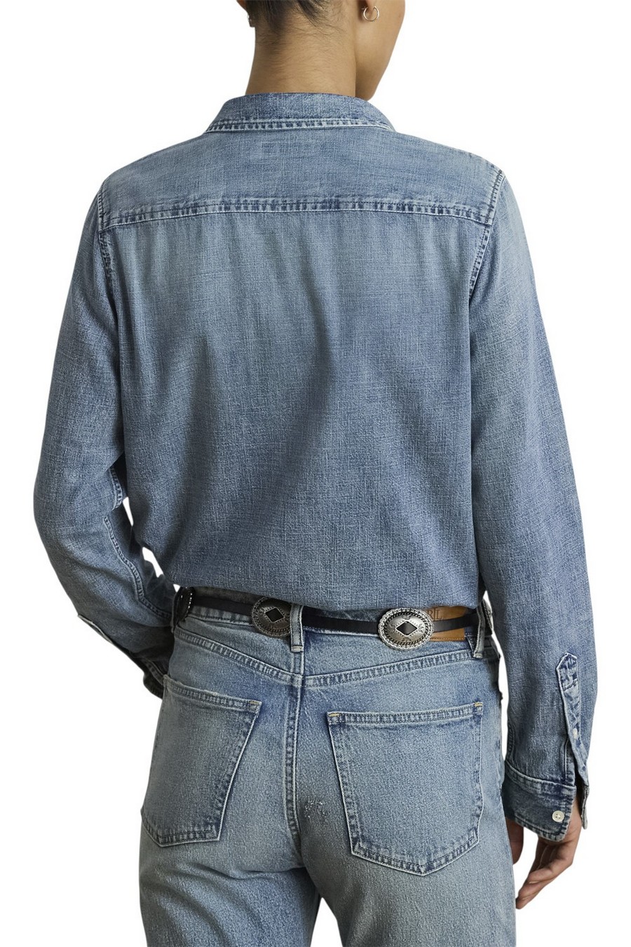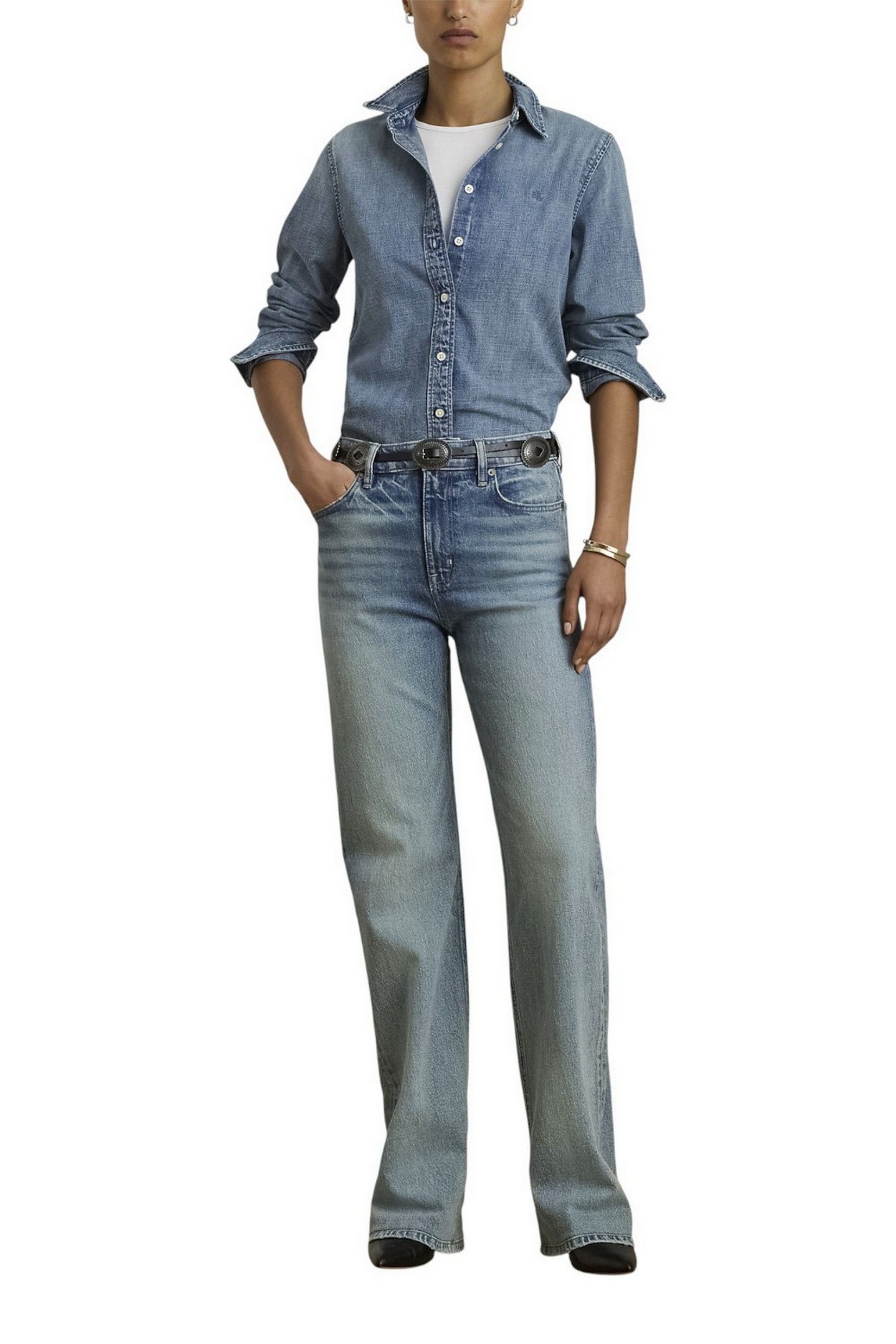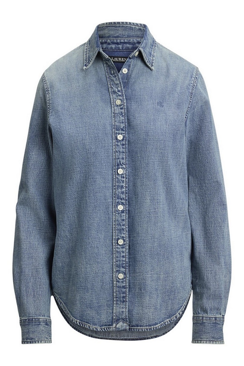 Camicia di Lauren Ralph Lauren in denim. Ricamato con il logo LRL sul petto, questo modello intramontabile unisce la silhouette slanciata di una camicia abbottonata al comodo denim twill. Vestibilità dritta. Lunghezza prevista all'anca. La taglia media ha una lunghezza del corpo di 70 cm e una lunghezza delle maniche di 82 cm. La lunghezza del corpo e delle maniche è misurata dal centro della nuca. Colletto a punta. Abbottonatura con bottoni. Bottoni personalizzati con logo Lauren Ralph Lauren. Maniche lunghe con polsini a barilotto abbottonati. Logo LRL" ricamato sul lato sinistro del petto. Carré posteriore. Orlo asimmetrico. 100% cotone. Lavabile in lavatrice o a secco. La modella è alta 178 cm e indossa una taglia S.