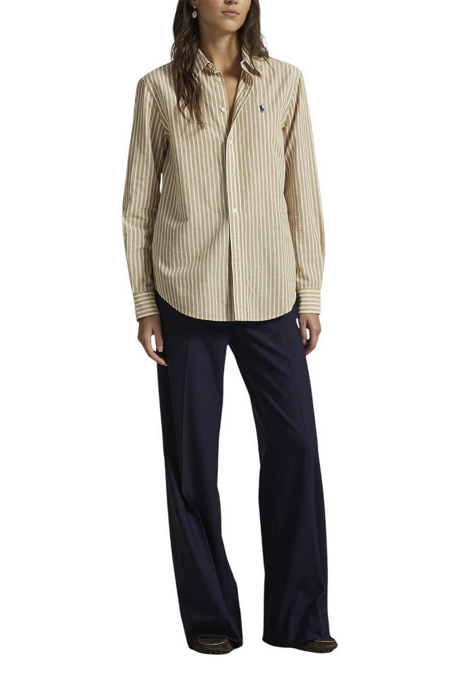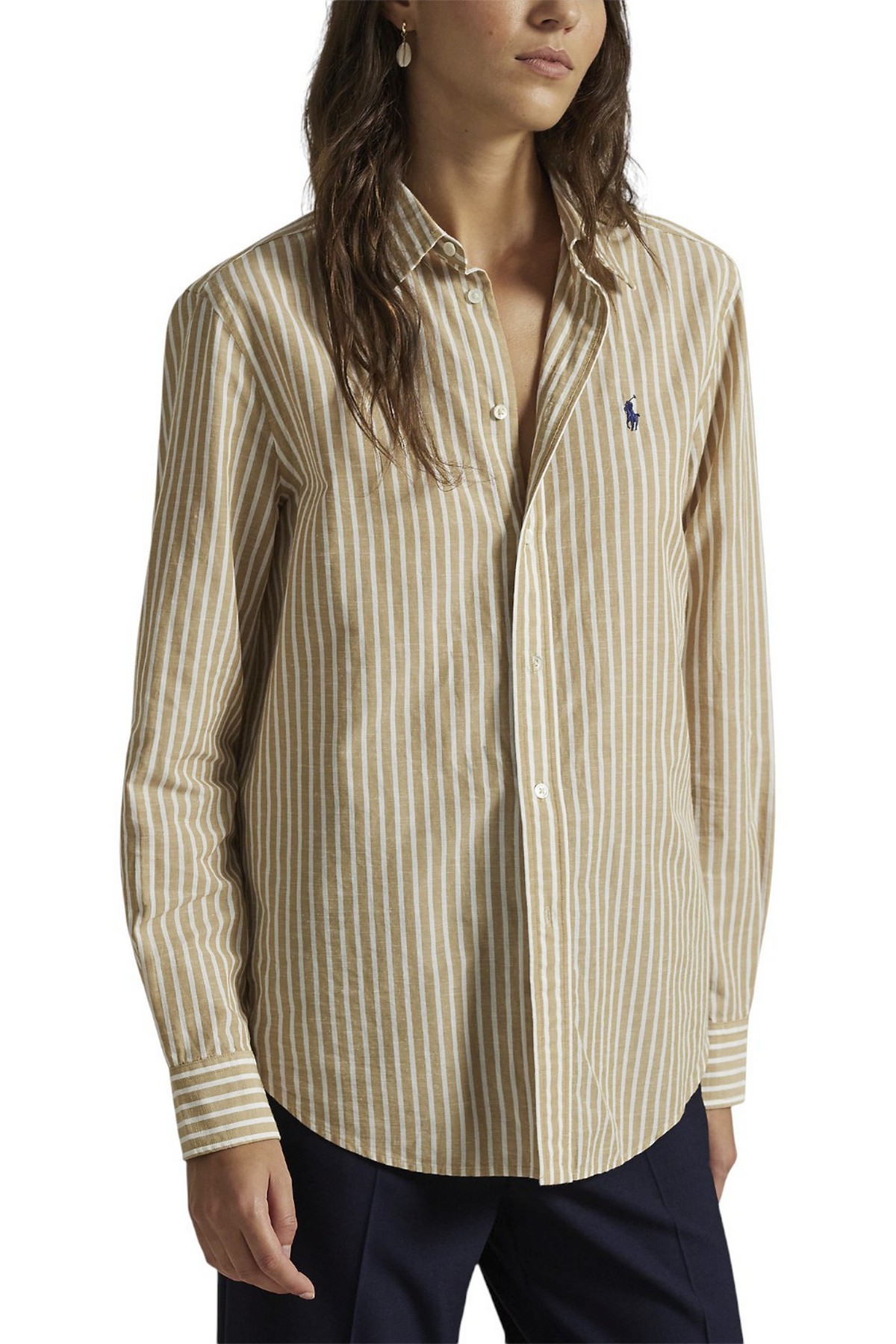 Camicia in cotone e lino di Ralph Lauren. Classica nello stile e nella vestibilità, presenta righe tinte in filo ed è impreziosita dal caratteristico cavallino ricamato sul petto. Vestibilità classica: silhouette dritta. Lunghezza fino ai fianchi. La taglia media ha una lunghezza posteriore di 74 cm e una lunghezza delle maniche di 84 cm. La lunghezza del corpo e delle maniche è misurata dal centro della nuca. Colletto a punta. Abbottonatura con bottoni. Bottoni in madreperla. Maniche lunghe con polsini a barilotto abbottonati. Pony ricamato distintivo sul lato sinistro del petto. Carré posteriore con piega a cannuccia. Orlo arrotondato. Corpo: 78% cotone, 22% lino. Lavabile in lavatrice o a secco. La modella è alta 178 cm e indossa una taglia S.
