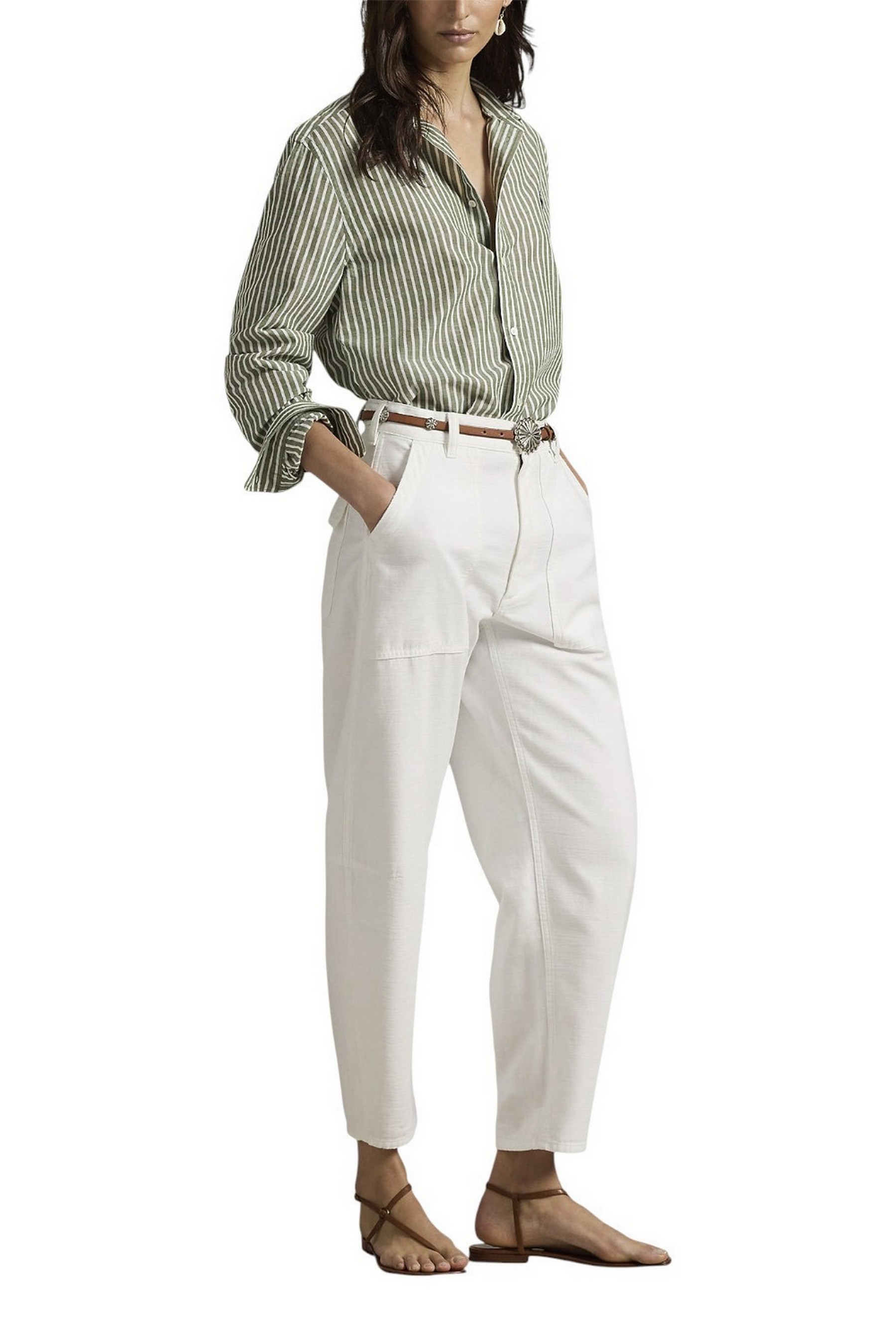 • camicia donna in lino e cotone over a righe militare e bianco Ralph Lauren | 211971514500