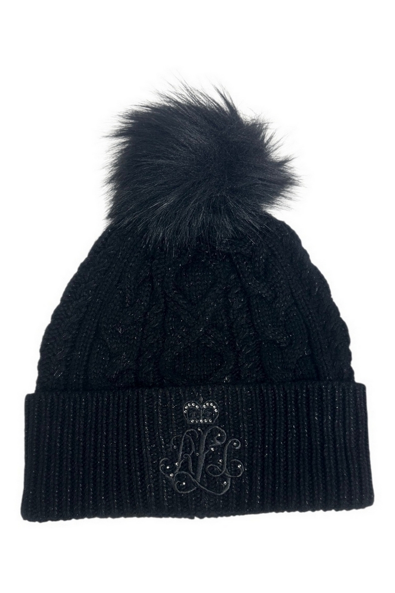 Cappello Ralph Lauren. Taglia unica. Apertura 24 cm. Bordo a coste ripiegato. Logo "LRL" metallico ricamato in corsivo, impreziosito da strass e una corona sul risvolto. Pompon in pelliccia ecologica sulla corona. Composizione esterna: 55% poliestere, 20% lana, 15% nylon, 10% cotone (escluse le decorazioni). Composizione pompon: 100% acrilico.