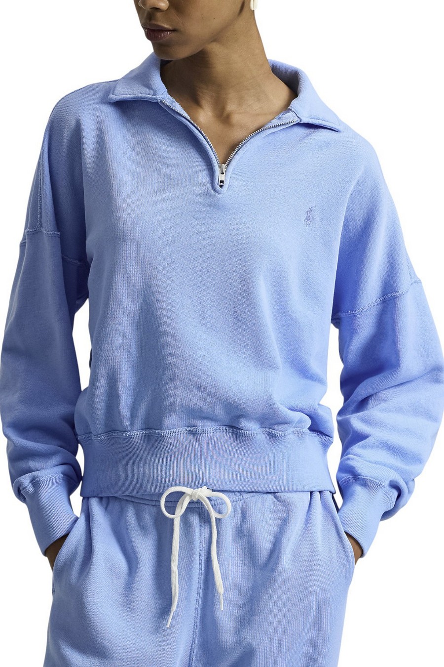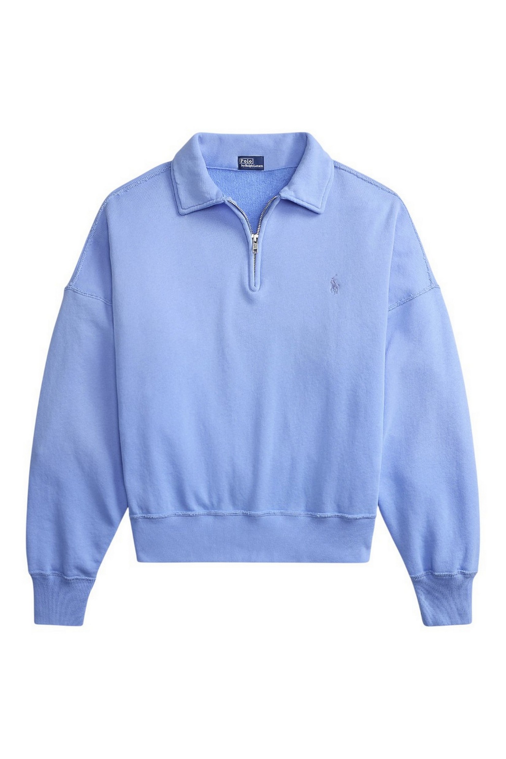 Pullover di Ralph Lauren realizzata in morbido misto cotone con interno in felpa loopback. Con zip a un quarto, presenta un interno simile alla spugna ed è ricamato con il caratteristico Pony sul petto. Vestibilità comoda. Lunghezza fino ai fianchi. La taglia media ha una lunghezza del corpo di 58,4 cm e una lunghezza delle maniche di 90,8 cm. La lunghezza del corpo è misurata dal punto più alto della spalla. La lunghezza delle maniche è misurata dal centro della nuca e varia di 1,9 cm tra le taglie. Colletto aperto. Abbottonatura con zip a un quarto. Maniche lunghe con polsini a costine. Orlo a costine. Pony ricamato distintivo sul lato sinistro del petto. Corpo: 84% cotone, 16% poliestere. Lavabile in lavatrice o a secco. La modella è alta 178 cm e indossa una taglia S.