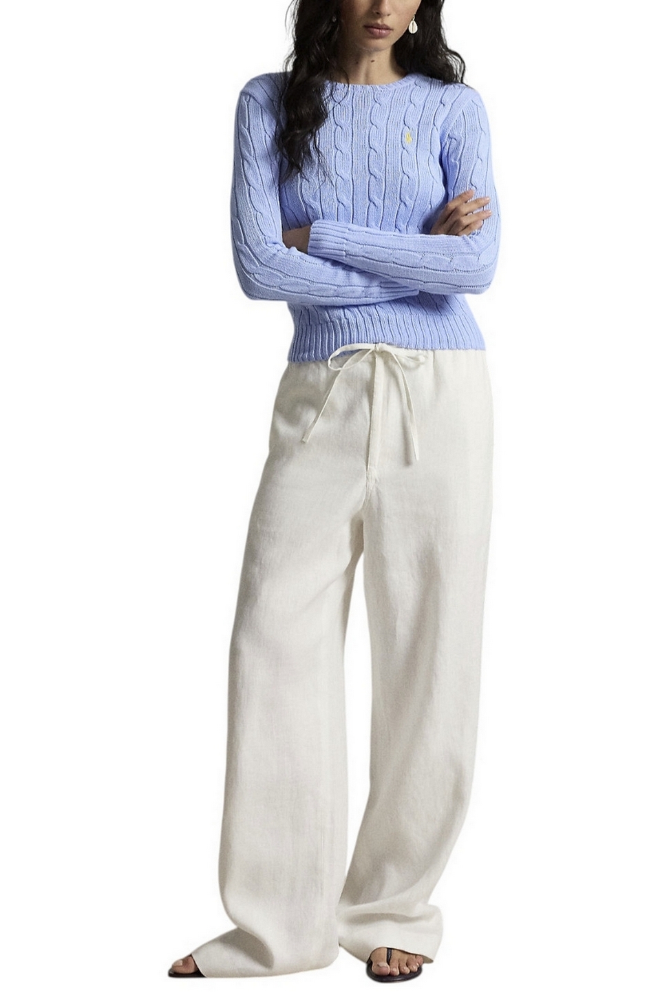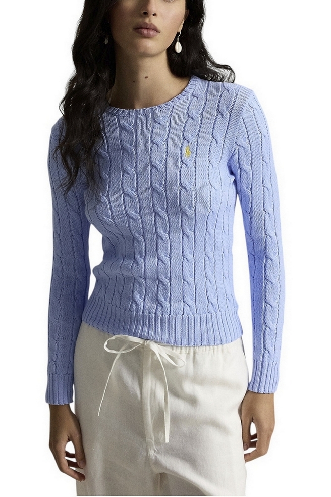 Maglione a girocollo di Ralph Lauren dalla vestibilità slim. Realizzato in cotone traspirante. Caratteristica costruzione a maglia a cavo. Vestibilità slim. Girocollo. Maniche lunghe con polsini a costine. Orlo a costine. Pony ricamato a sinistra sul petto. Composizione: 100% cotone. Lavabile in lavatrice o a secco.