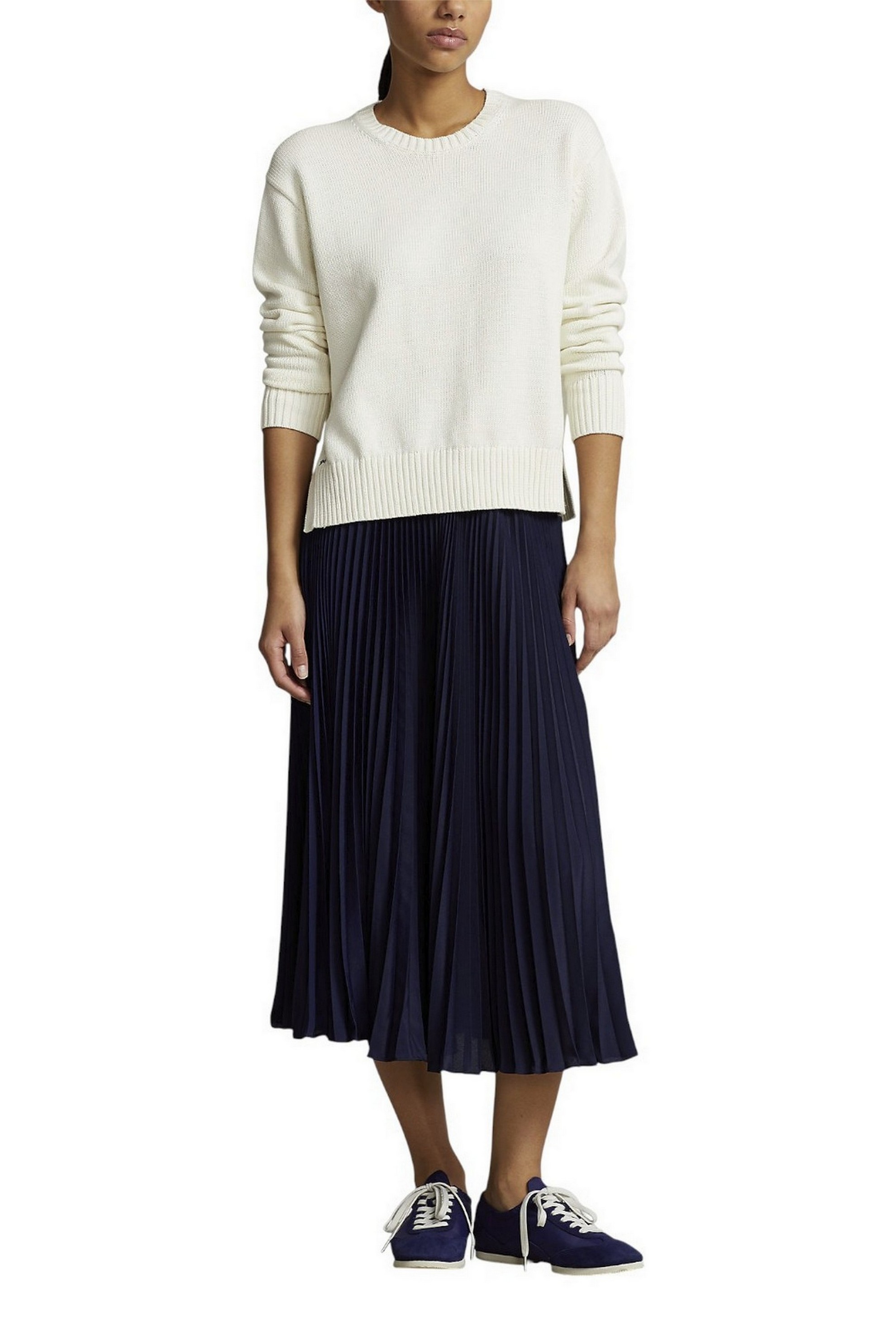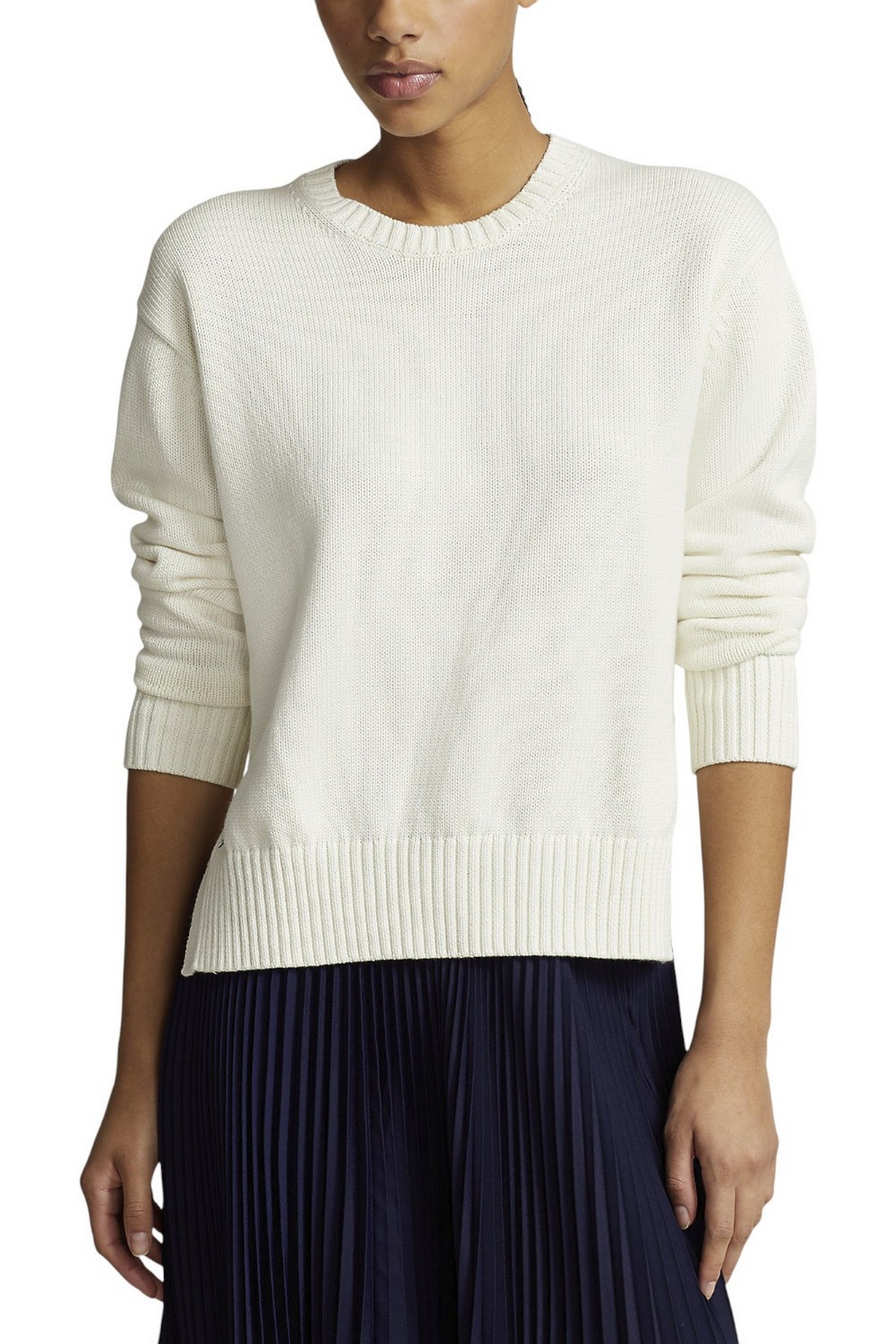 Maglione girocollo, capo intramontabile di Ralph Lauren. Lavorato a maglia con filato di cotone spesso e rifinito con il caratteristico Pony ricamato sopra l'orlo destro. Vestibilità slim. Lunghezza fino ai fianchi. Girocollo. Maniche lunghe con polsini a costine. Orlo a costine. Pony ricamato sopra l'orlo destro. 100% cotone. Lavabile in lavatrice o a secco.La modella è alta 178 cm e indossa una taglia small.