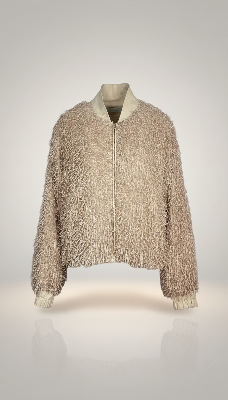 Bomber di Rame. Tessuto piume più punti luce. Chiusura con zip. Tasche. Vestibilità morbida. Composizione: 100% poliestere. Made in Italy.