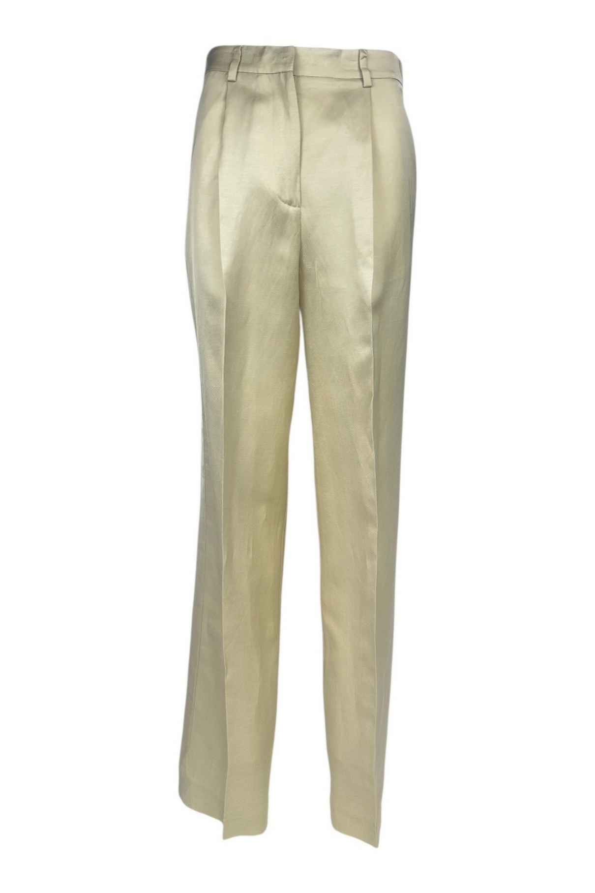Pantalone di Rame. Modello gamba larga con pinces. Tessuto cangiante. Tasche. Cinturino in vita con passanti. Vestibilità regolare. Composizione: 55% viscosa, 34% lino, 11% cotone. Made in Italy.