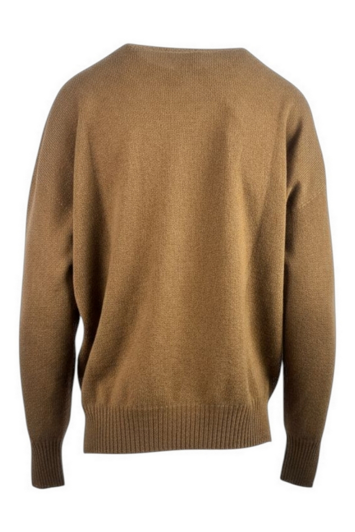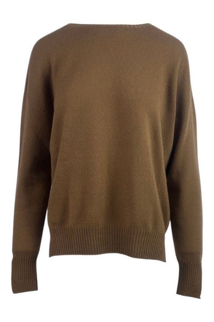 Maglia di Solo casmir. Girocollo. Spacchi laterali su fondo e polso. Spalla calata. Vestibilità over. Composizione: 100% cachemire.