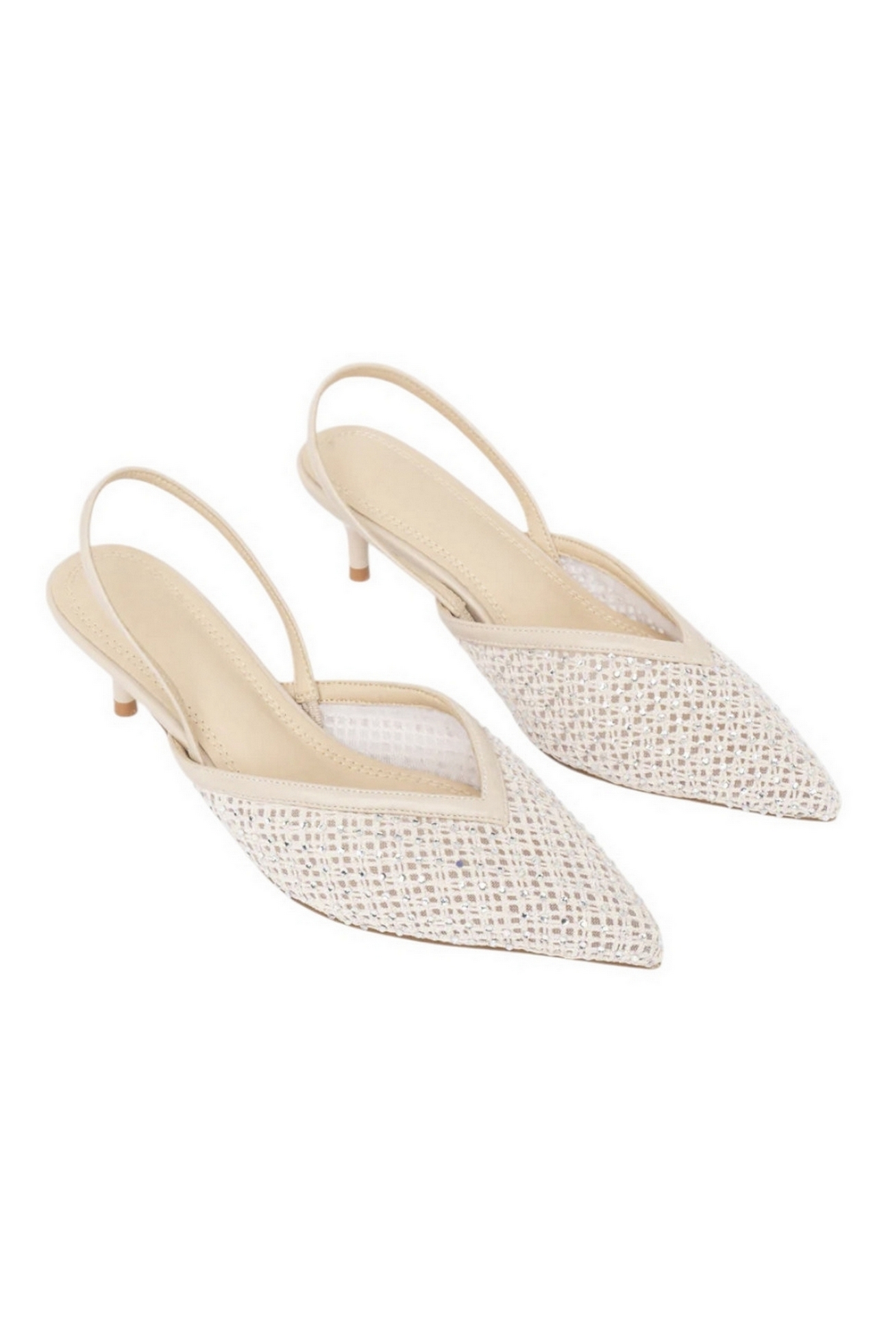 Slingback di Twenty Fourhaitch in crinolina a rete con strass. Elastico laterale. Calzata regolare. Tacco 5 cm.