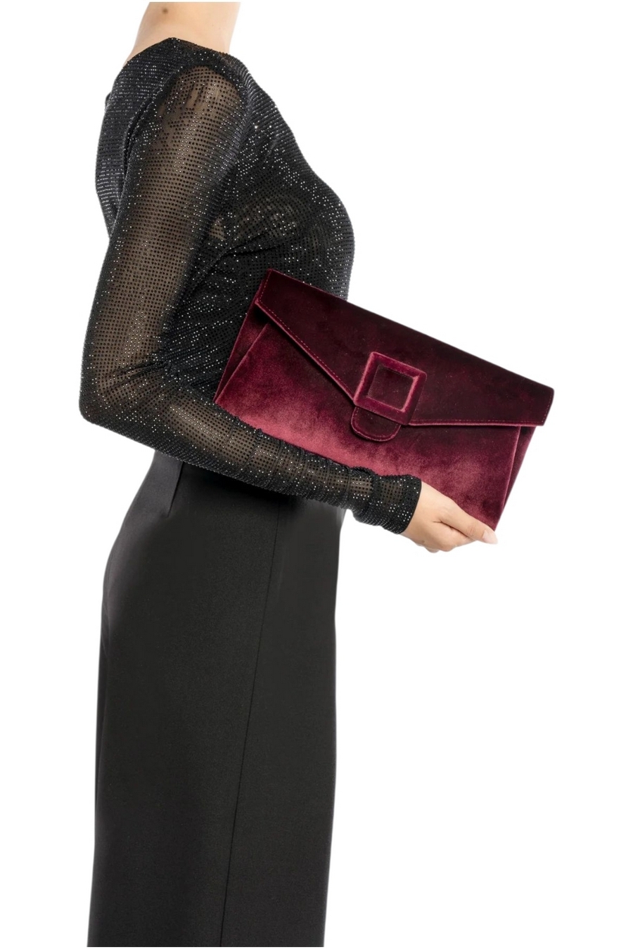 Pochette Beid in velluto di Twentyfourhaicth con fibbia in matching color. Tracolla sottile removibile. Dimensioni: 29*2.5*15