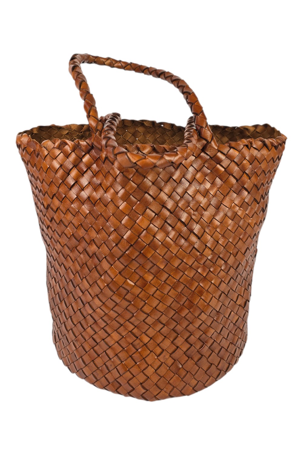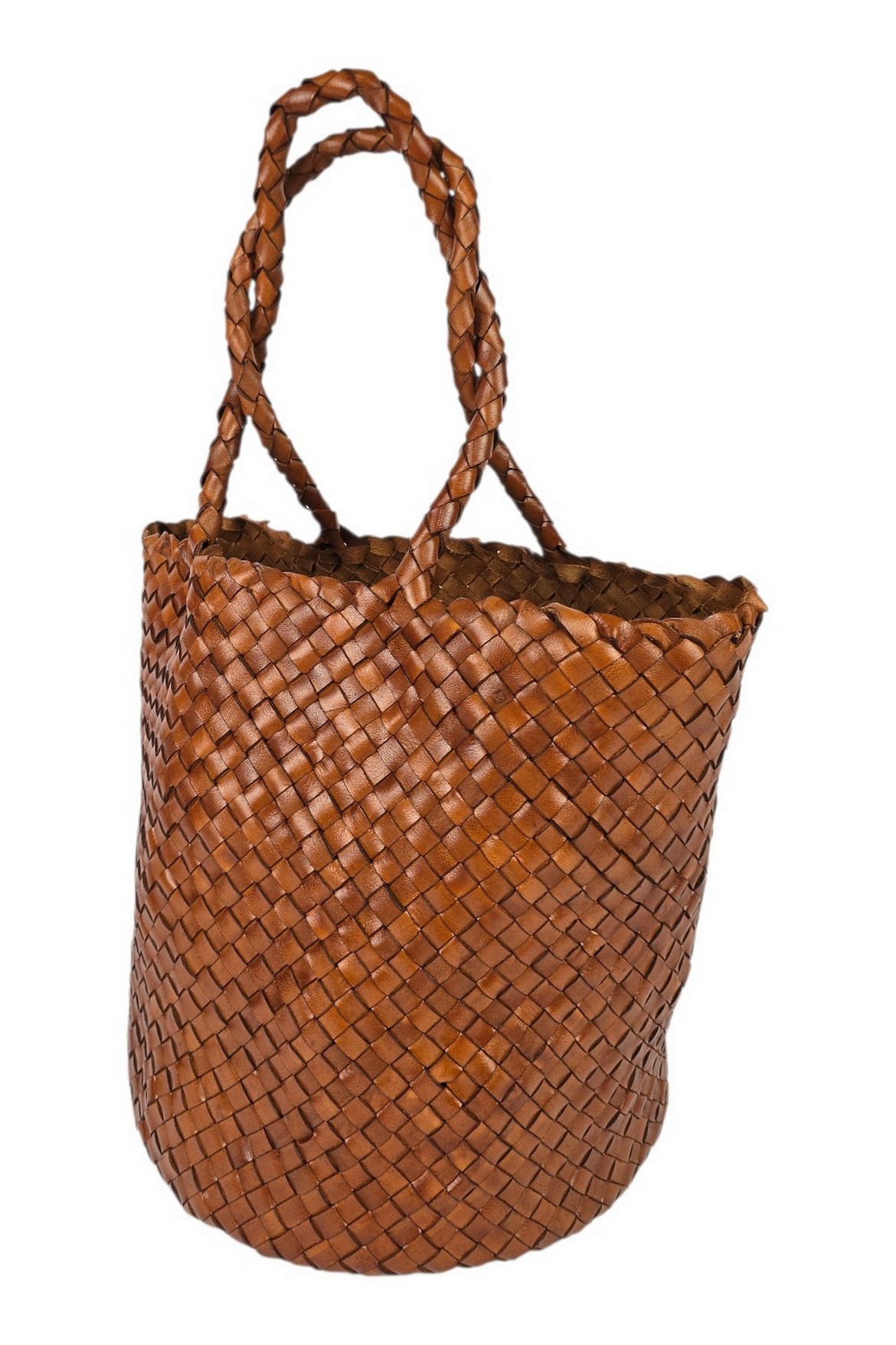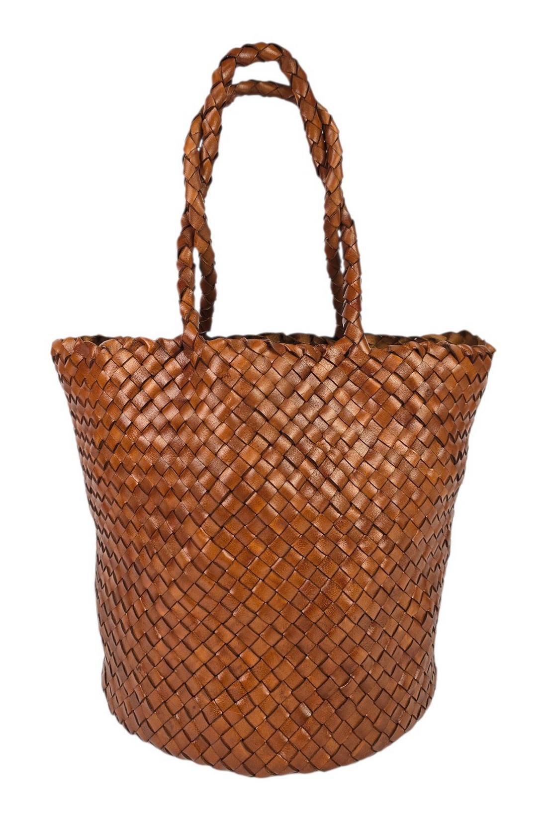 Borsa di VETRA STUDIO in pelle intrecciata. Modello secchiello. Dimensioni: altezza 27 cm, profondità 24 cm, larghezza 24 cm. Made in Italy.
