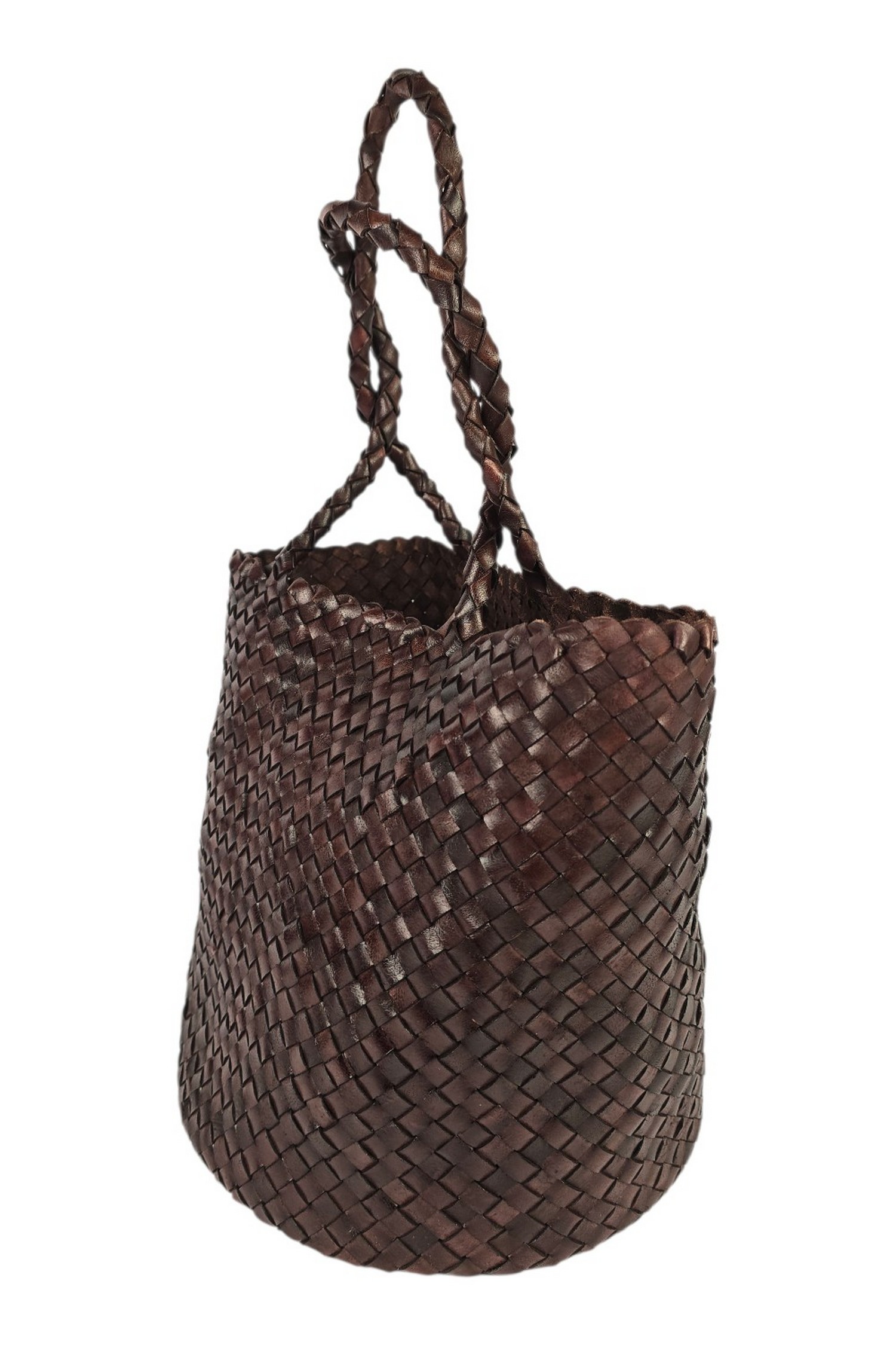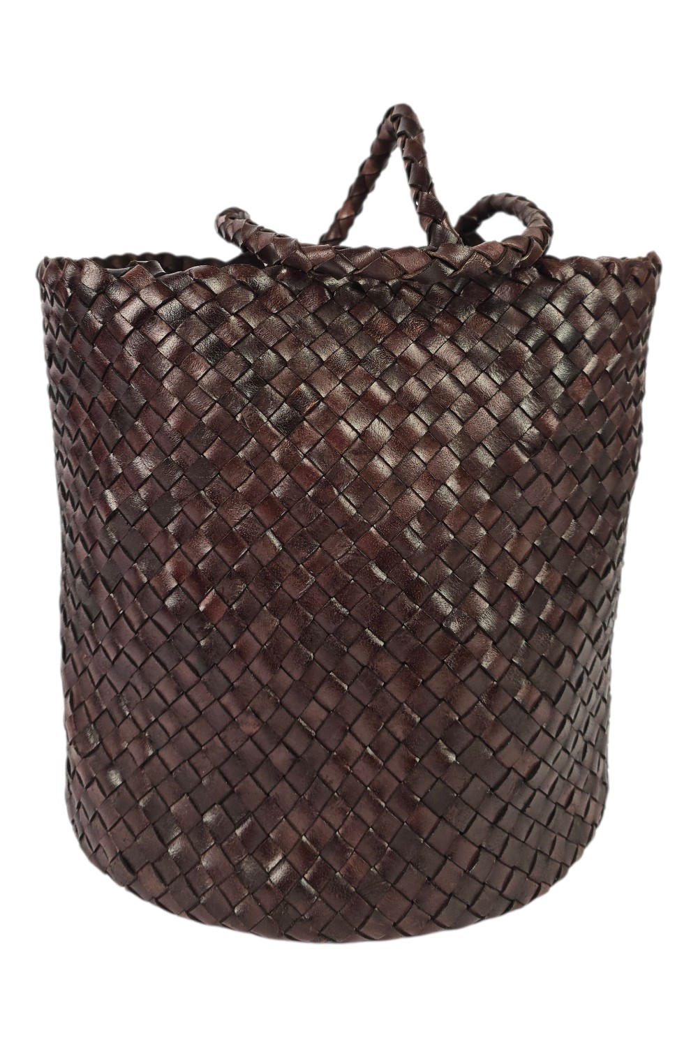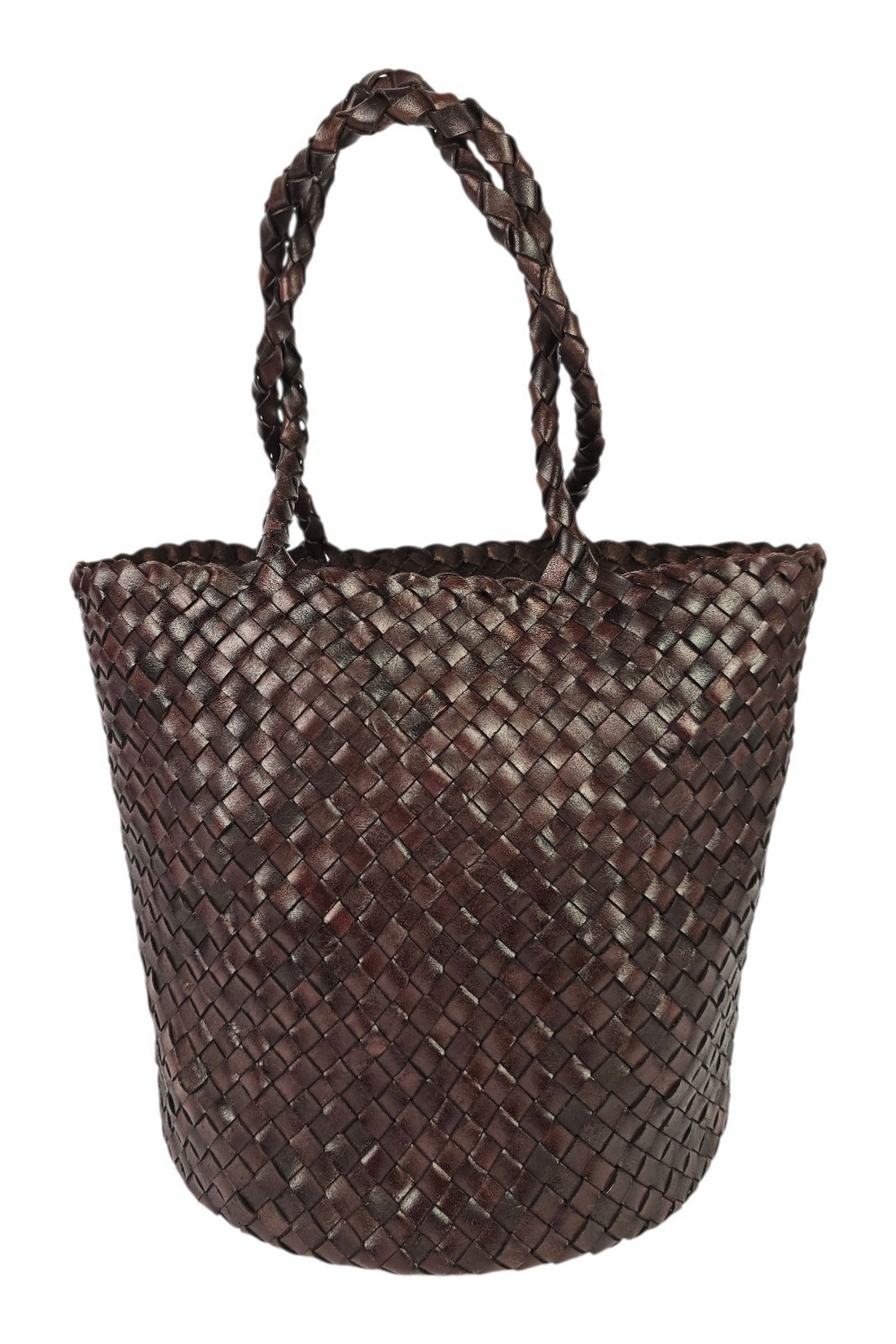 Borsa di VETRA STUDIO in pelle intrecciata. Modello secchiello. Dimensioni: altezza 27 cm, profondità 24 cm, larghezza 24 cm. Made in Italy.
