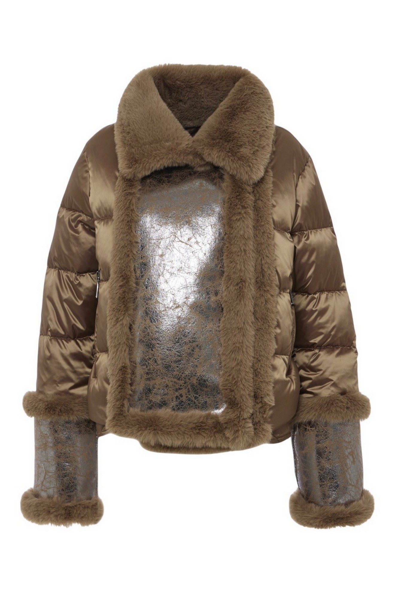 Giubbotto di Violanti. Dettagli in eco-montone. Effetto metallizzato. Chiusura con zip. Composizione 1: 100% poliestere. Composizione 2: 54% poliestere, 46% nylon. La composizione dei tessuti offre leggerezza e comfort.