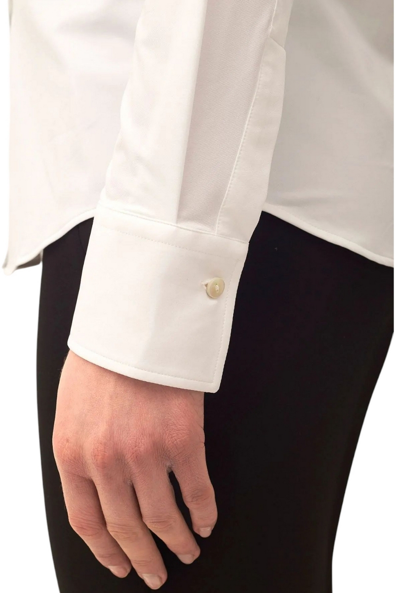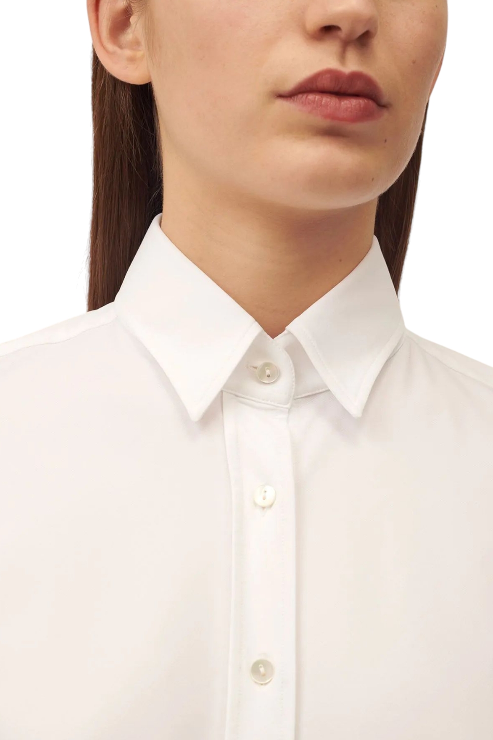 Camicia Sara di Xacus in tessuto stretch. Collo classico a punta e vestibilità slim. Composta da un filato di poliammide ed elastane. Active-shirt è un capo altamente traspirante, 3D stretch che si asciuga rapidamente, rimanendo sempre confortevole in qualsiasi situazione di movimento. Composizione del tessuto: 86% poliammide, 14% elastane